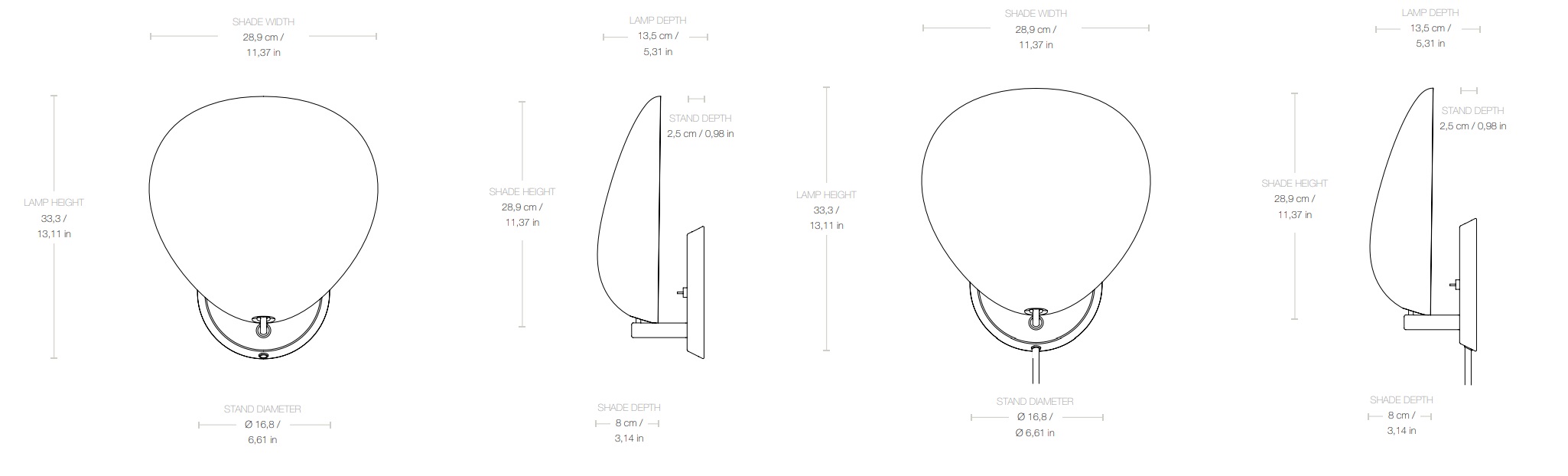 Светильник Cobra получил свое название благодаря форме овального плафона, который напоминает шею (или капюшон) кобры. Дизайн отличается высокой функциональностью: плафон можно наклонять на 90 градусов (от вертикали до горизонтали) и вращать на 360 градусов, что позволяет точно направлять световой поток. Лампа доступна в двух вариантах подключения: с прямым подключением к сети (hard-wired) и с кабелем и вилкой.