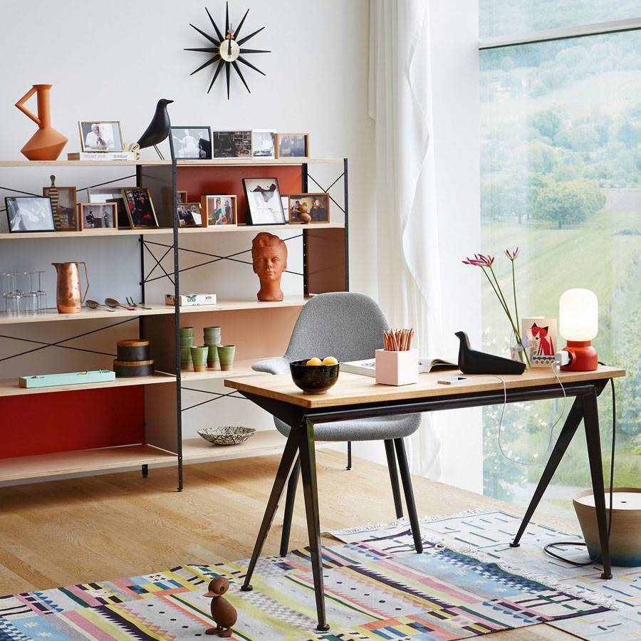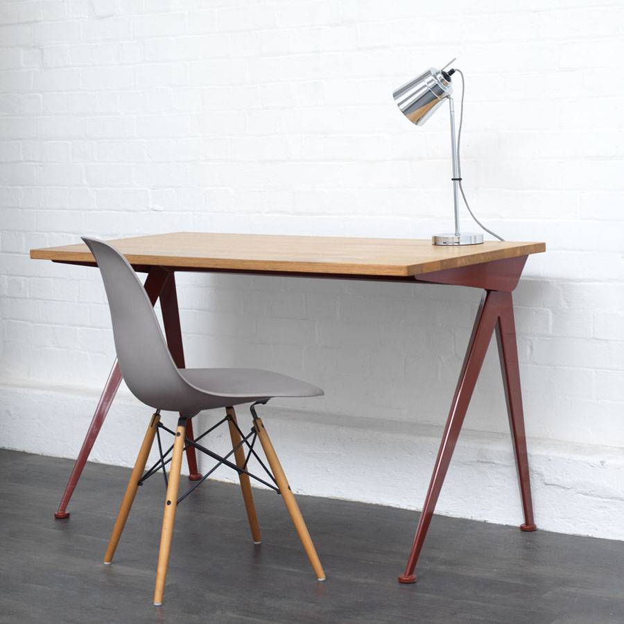 Письменный стол Compas выполнен в современном стиле. Столешница прямоугольной формы изготовлена из дерева (натуральный дуб, копченый дуб и американский орех). Четыре устойчивые ножки стола, напоминающие стрелки компаса, состоят из листового металла. Более подробную информацию и варианты расцветок можно уточнить у менеджера.