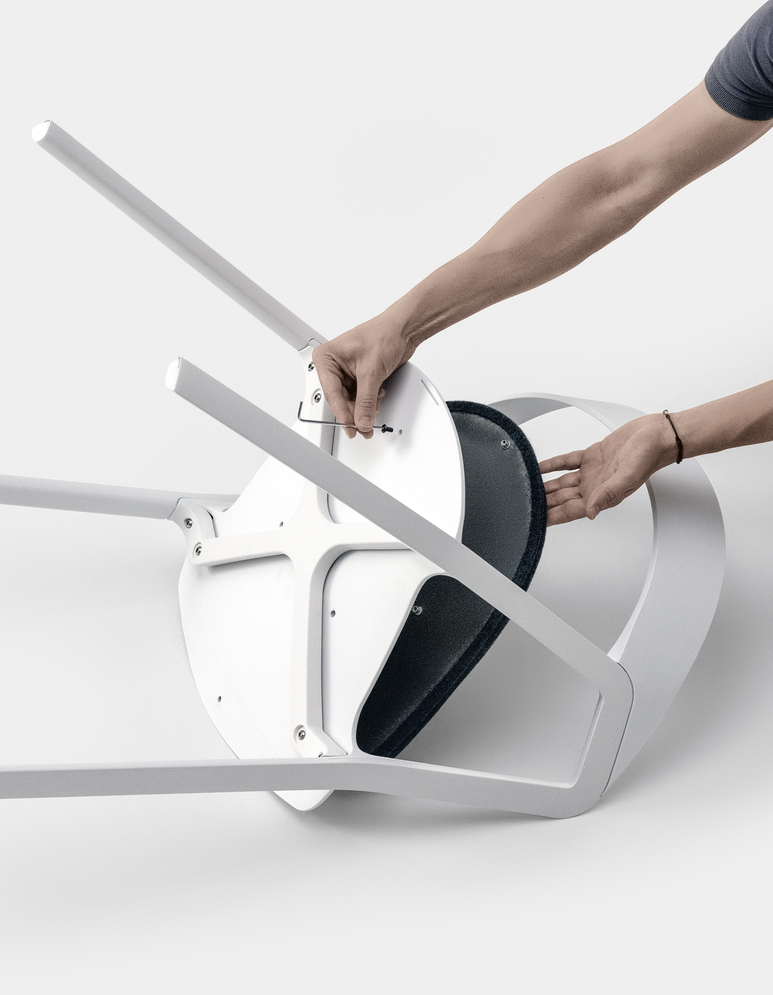 Ножки стула Compas изготавливаются из крепкого алюминия. Сиденье и спинка выполняются из пластика. Ножки, сидение и спинка покрываются лаком в четырех вариантах цвета: белый, черный, бежевый и голубой. Сидение дополняется тканевой подушкой различных цветов и состава. Подробнее о данной модели уточняйте у менеджеров или в PDF инструкции.