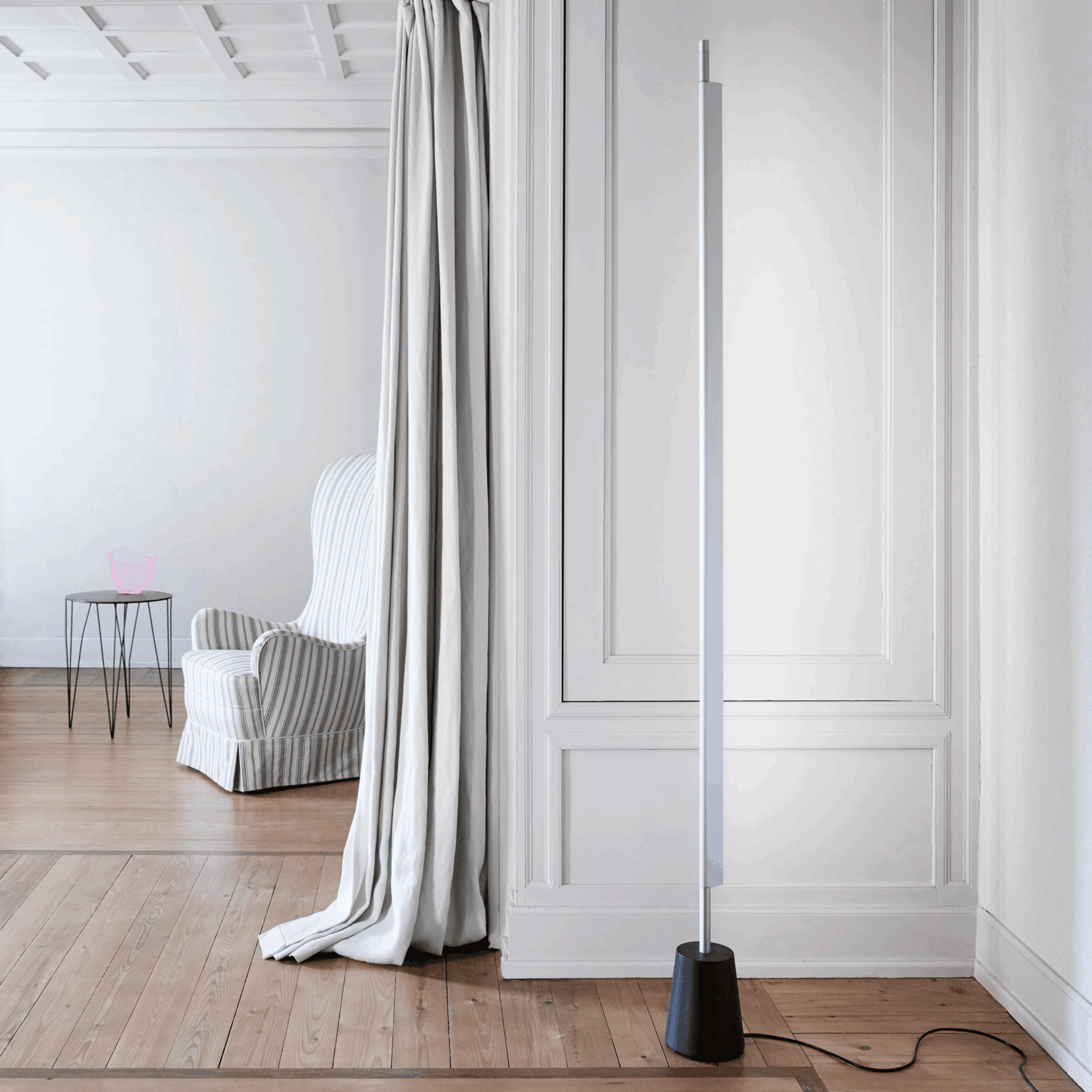 Одной из ключевых особенностей Compendium Floor является возможность свободного вращения светодиодного источника света на основании. Это даёт возможность направлять свет в нужном направлении, освещая стены или другие поверхности, и предотвращает появление прямых бликов, обеспечивая равномерное и комфортное освещение.