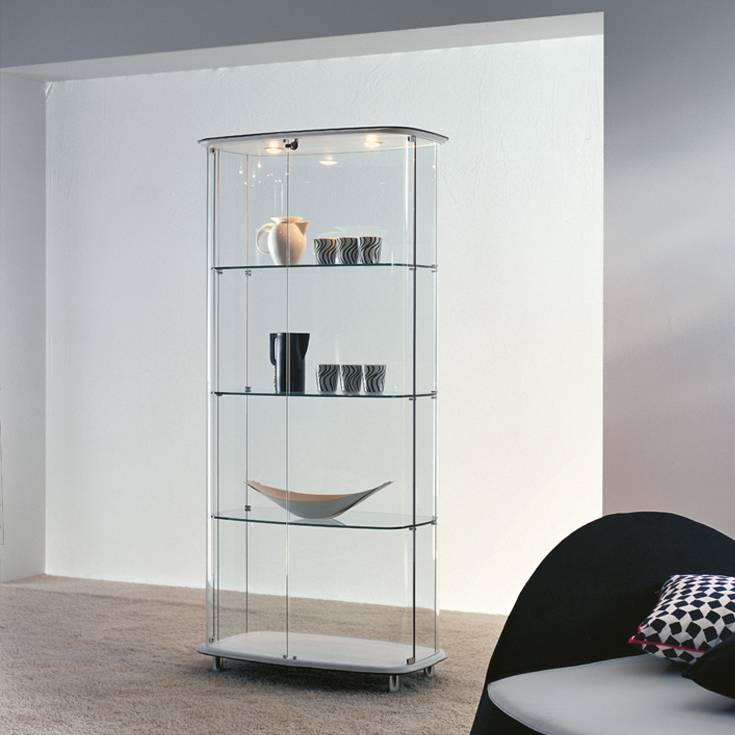 Две встроенные светодиодные лампы бережно и эффективно подсвечивают внутреннее пространство, выгодно представляя каждый экспонат и превращая витрину в эффектный арт-объект в вечернее время.
