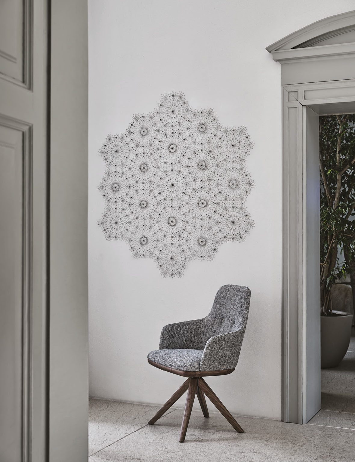Connie girevole — это изысканный стул, воплощающий элегантность и утончённость. Он создан для тех, кто стремится создать в интерьере пространство, сочетающее комфорт и стиль. Каркас стула изготовленный из массива ясеня, придаёт ему прочность и долговечность. Ясень известен своей устойчивостью к механическим повреждениям и влаге, что делает стул надёжным и долговечным элементом интерьера.