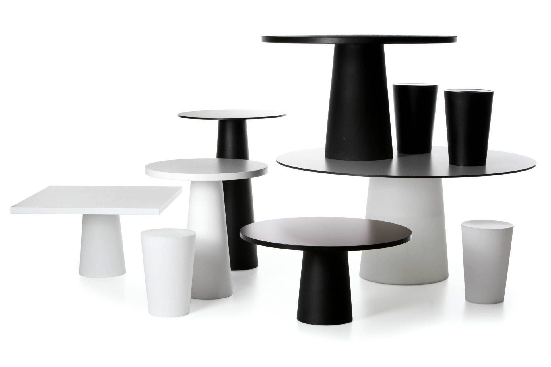 Семейство Container включает в себя табуретки и различные столы с круглой, овальной, квадратной или прямоугольной столешницей. Основание столика Container изготавливается из пластика в пяти вариантах цвета: белый, черный, оранжевый, светло-серый и темно-серый. Столешница выполняется в трех вариантах материала: дерево, линолеум или пластик. Доступно несколько размеров столешниц и основания. Подробную информацию о данной модели уточняйте у менеджеров или в PDF инструкции.