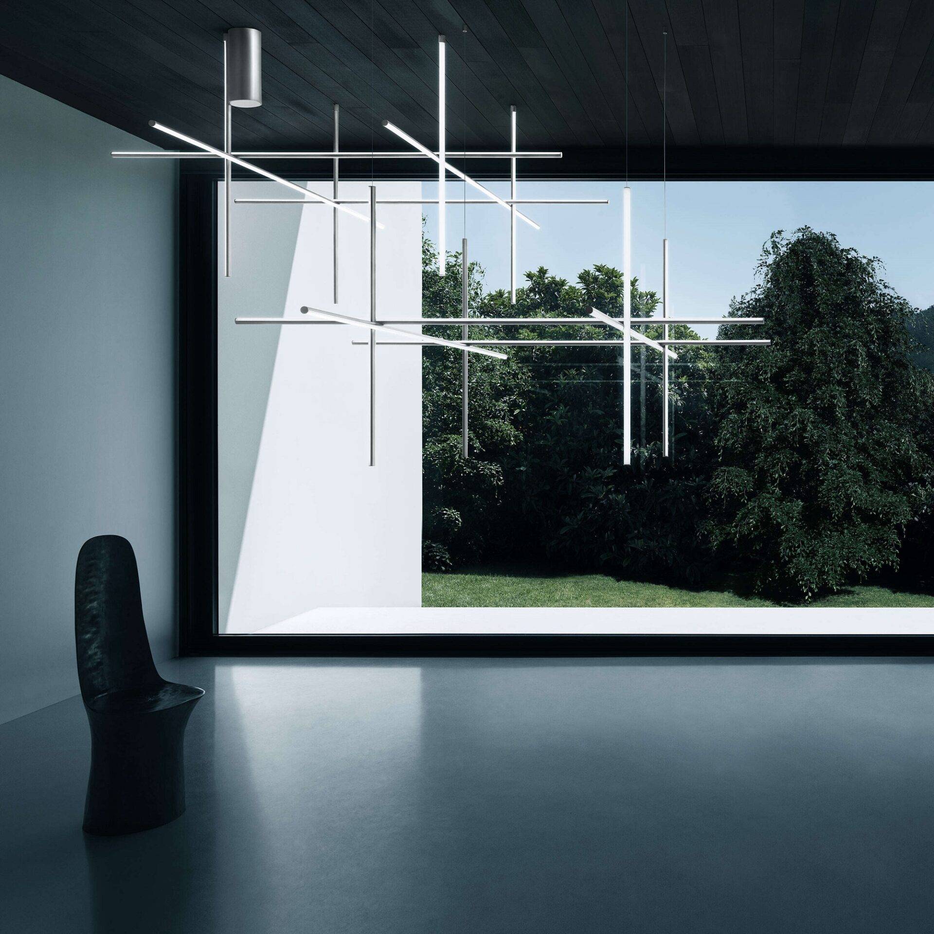 Подвесной светильник Coordinates Ceiling — это инновационная системы освещения, где свет становится архитектурным элементом. Эта коллекция предлагает гибкую модульную структуру, состоящую из горизонтальных и вертикальных линейных модулей, от простых геометрических композиций до сложных пространственных инсталляций.