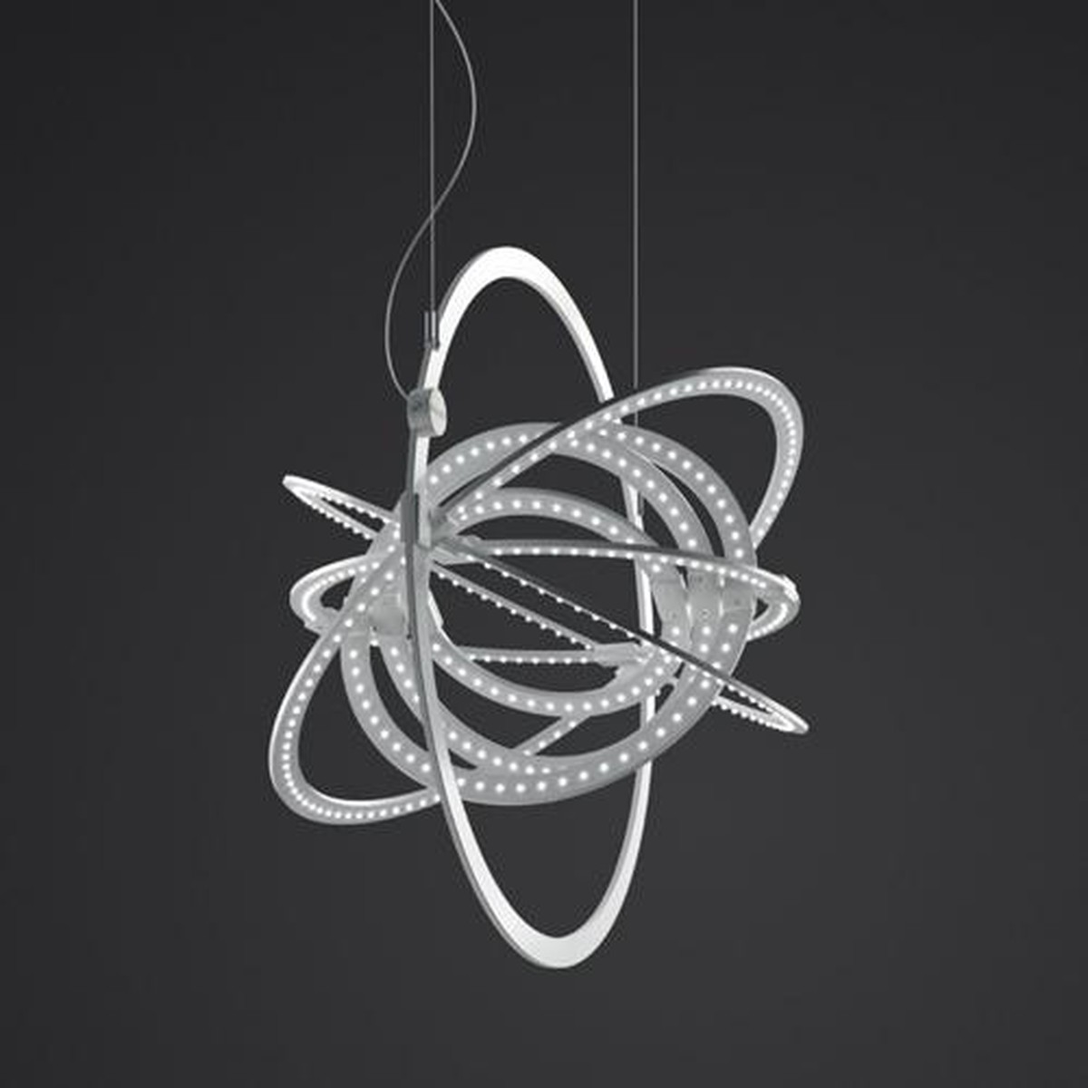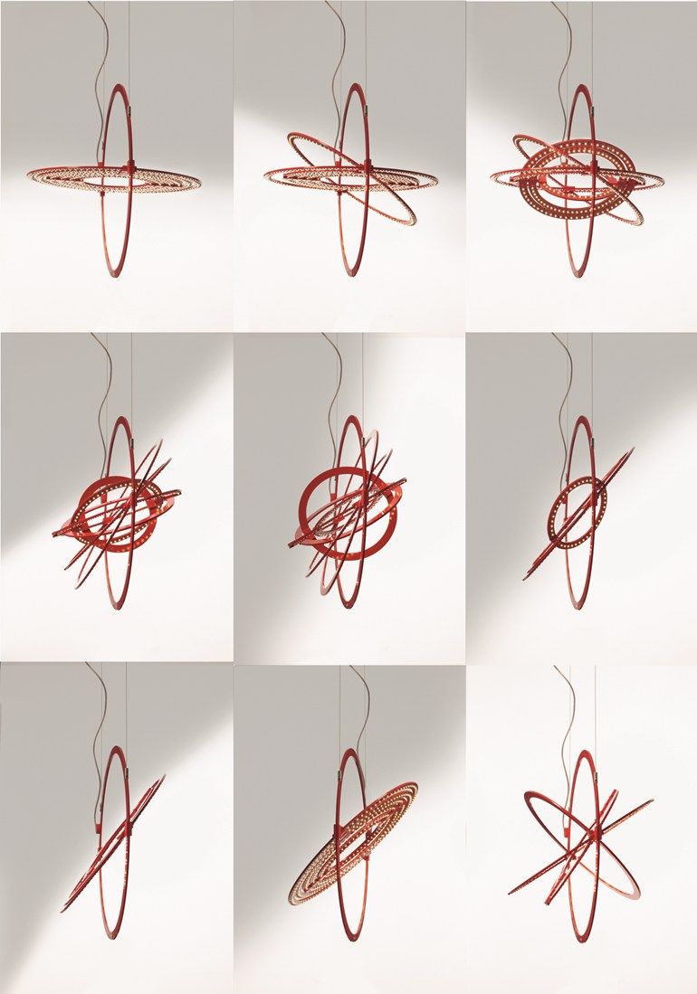 Подвесной светильник Copernico изготавливается из алюминиевого листа толщиной 1 см, поделенного на окружности. Каждый элемент окружности можно вращать. Доступно два варианта цвета: красный или белый. Подробнее о данной модели уточняйте у менеджеров или в PDF инструкции.