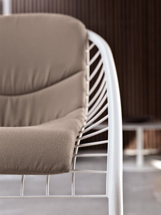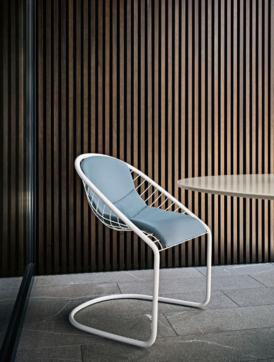 Коллекция Cortina от бренда Minotti включает в себя кресла и стулья как для дома, так и для улицы. Для изготовления каркаса стула Cortina Outdoor используются металлические трубы диаметром 30 мм. Поддержкой для сиденья является прочная сетка. Сиденье изготавливается из ткани, которая пропитана специальным водоотталкивающим составом. Доступно несколько вариантов цвета обивки. Наполнение стула — пенополиуретан. Модель можно использовать на улице, благодаря использованию специальных влагостойких материалов.