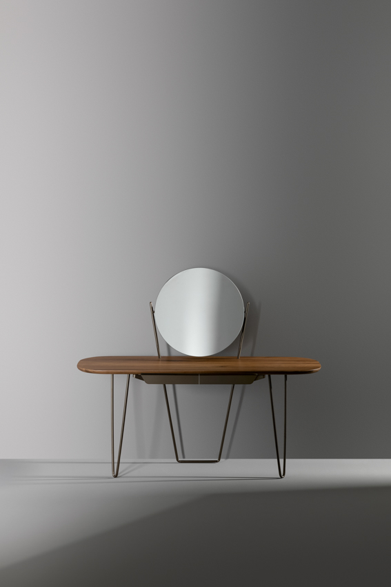 Coseno — это воплощение минималистичной элегантности и многофункциональности, где каждый элемент служит не только своей цели, но и общей идее дизайна. Лёгкая конструкция из трубчатых металлических элементов сочетается с выразительными пропорциями, что делает её идеальным предметом мебели для самых разных зон: от входной группы до спальной комнаты.