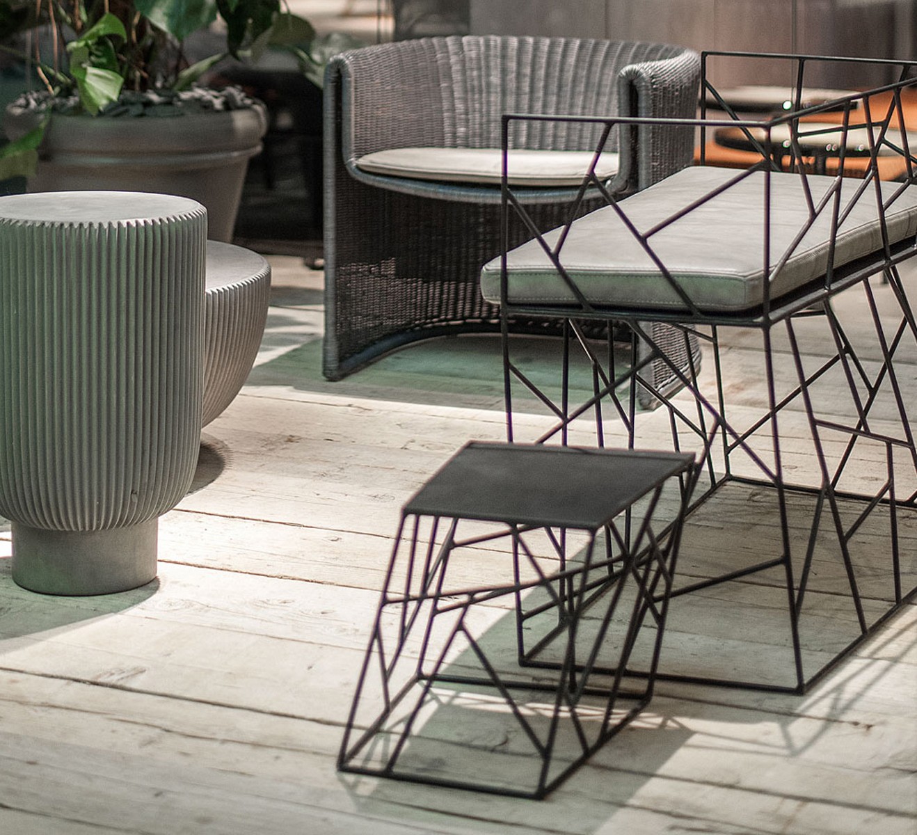 В коллекцию столиков Crakle от Baxter входит несколько столиков разных размеров и форм. Все столики выполнены из металлических прутьев, собранных в оригинальную, асимметричную композицию. Столешницы также изготавливаются из металла, окрашенного в матовый черный цвет.