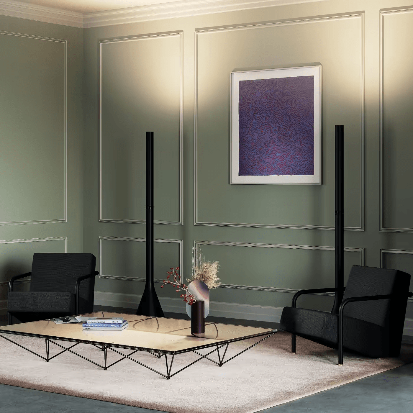 Изящная металлическая структура Croma, проецирующая лучи света вдоль стен по направлению к потолку, напоминает о динамизме музыкальной ноты, в честь которая она получила свое название.