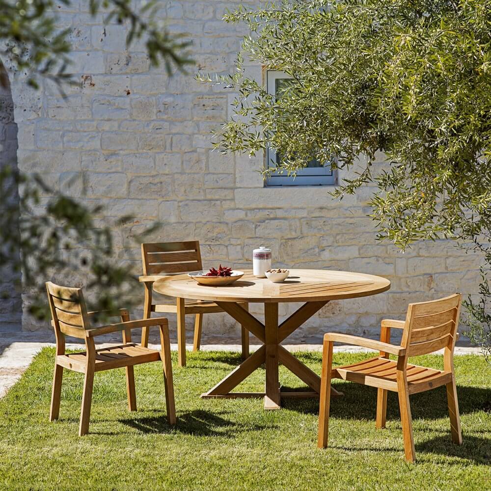 Обеденный стол Cronos от фабрики Ethimo имеет прямоугольную форму и оригинальное пересечение ножек. Основание стола и столешница могут быть выполнены из натурального или состаренного тика. В коллекцию Cronos входят также столы с прямоугольной и квадратной столешницей. Дополнительно можно приобрести чехол от дождя. Более подробную информацию можно уточнить у менеджера.