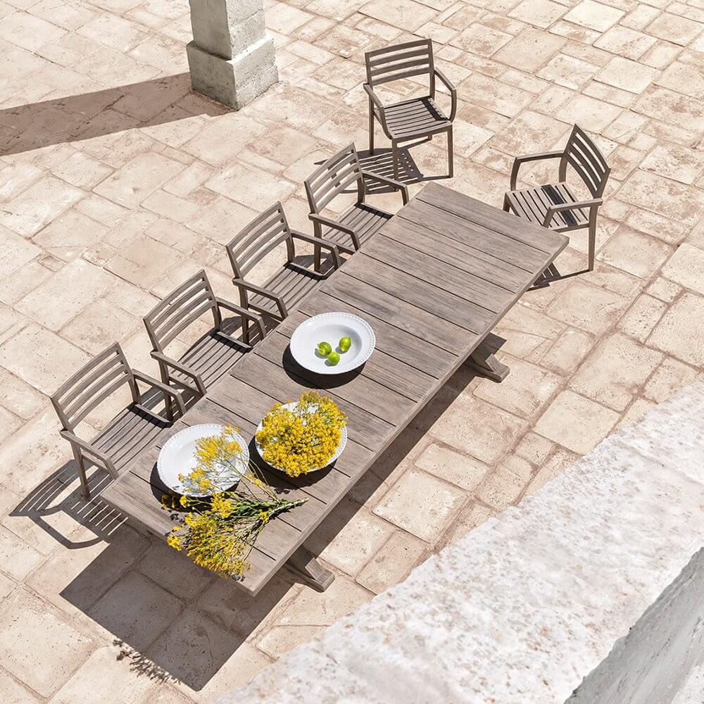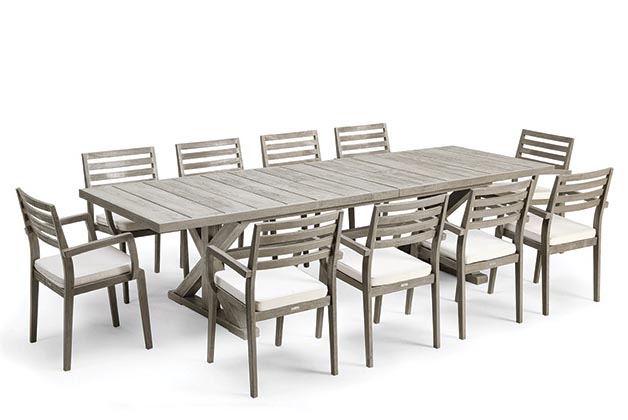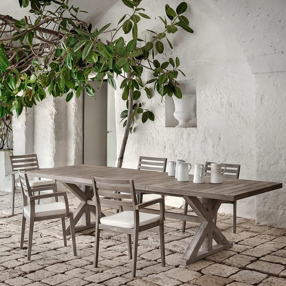 Обеденный стол Cronos от фабрики Ethimo имеет прямоугольную форму и оригинальное пересечение ножек. Основание стола и столешница могут быть выполнены из натурального или состаренного тика. В коллекцию Cronos входят также столы с круглой и квадратной столешницей. Дополнительно можно приобрести чехол от дождя. Более подробную информацию можно уточнить у менеджера.