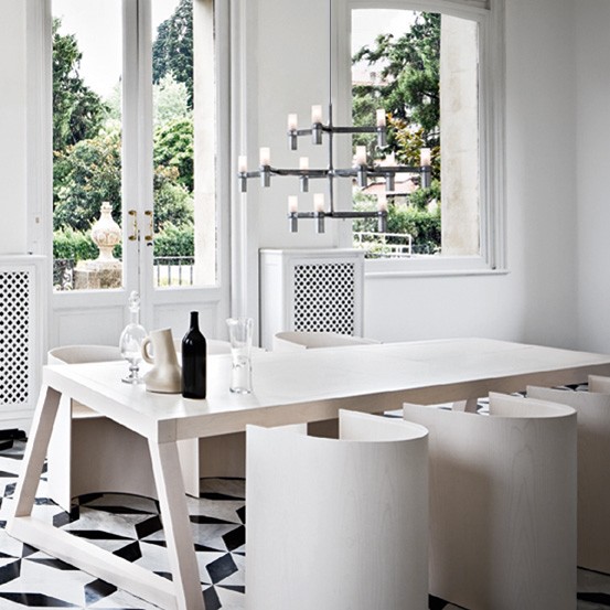 Подвесная люстра с модульной структурой из штампованного алюминия и стеклянными плафонами. Конструкция из алюминия с ручной полировкой, доступна в нескольких цветах: золотом, белом, черном и хромированном. Все светильники коллекции Crown обеспечивают широкое распространение света.