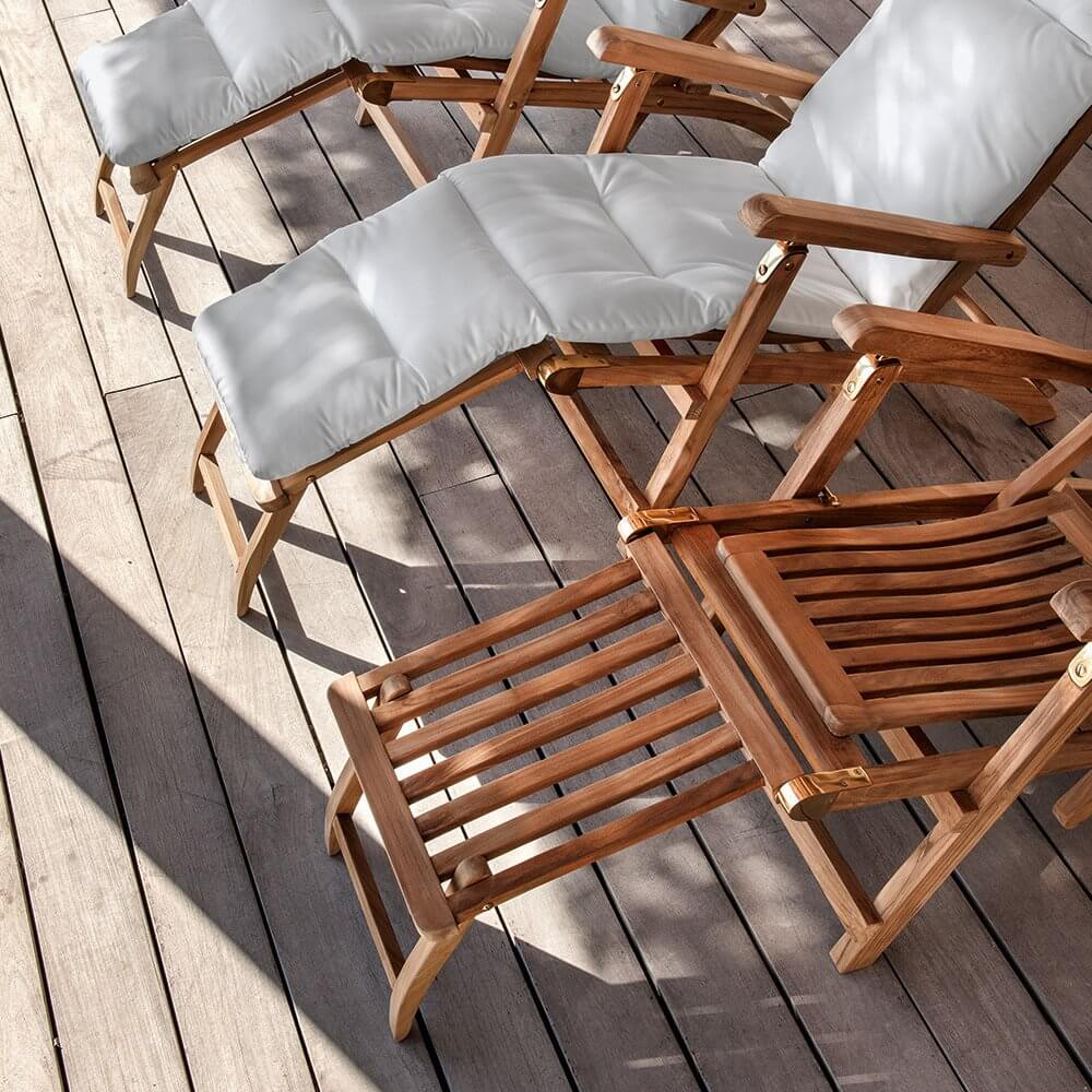 Складные шезлонги коллекции Cruise производятся с регулируемой спинкой из натурального тика. Металлические детали изготавливаются из латуни. Мягкий матрас из акрила входит в стоимость и может быть изготовлен в двух цветах: слоновая кость и черный. Более подробную информацию и доступные расцветки можно уточнить у менеджера.