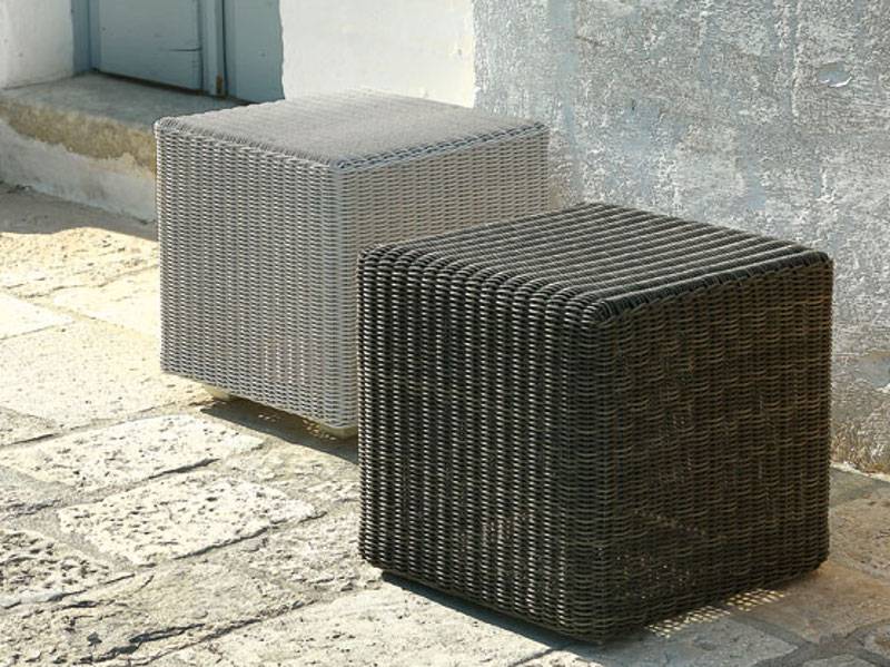 Cube — оригинальный садовый столик от фабрики Ethimo. Основание модели изготавливаются из волокон Etwick в коричневом либо белом цвете. Столешница выполнена из прозрачного стекла. Дополнительно можно приобрести чехол от дождя. В коллекцию Cube входит несколько видов журнальных столиков, пуф, кресло, модульный диван и шезлонги. Более подробную информацию и доступные расцветки можно уточнить у менеджера.