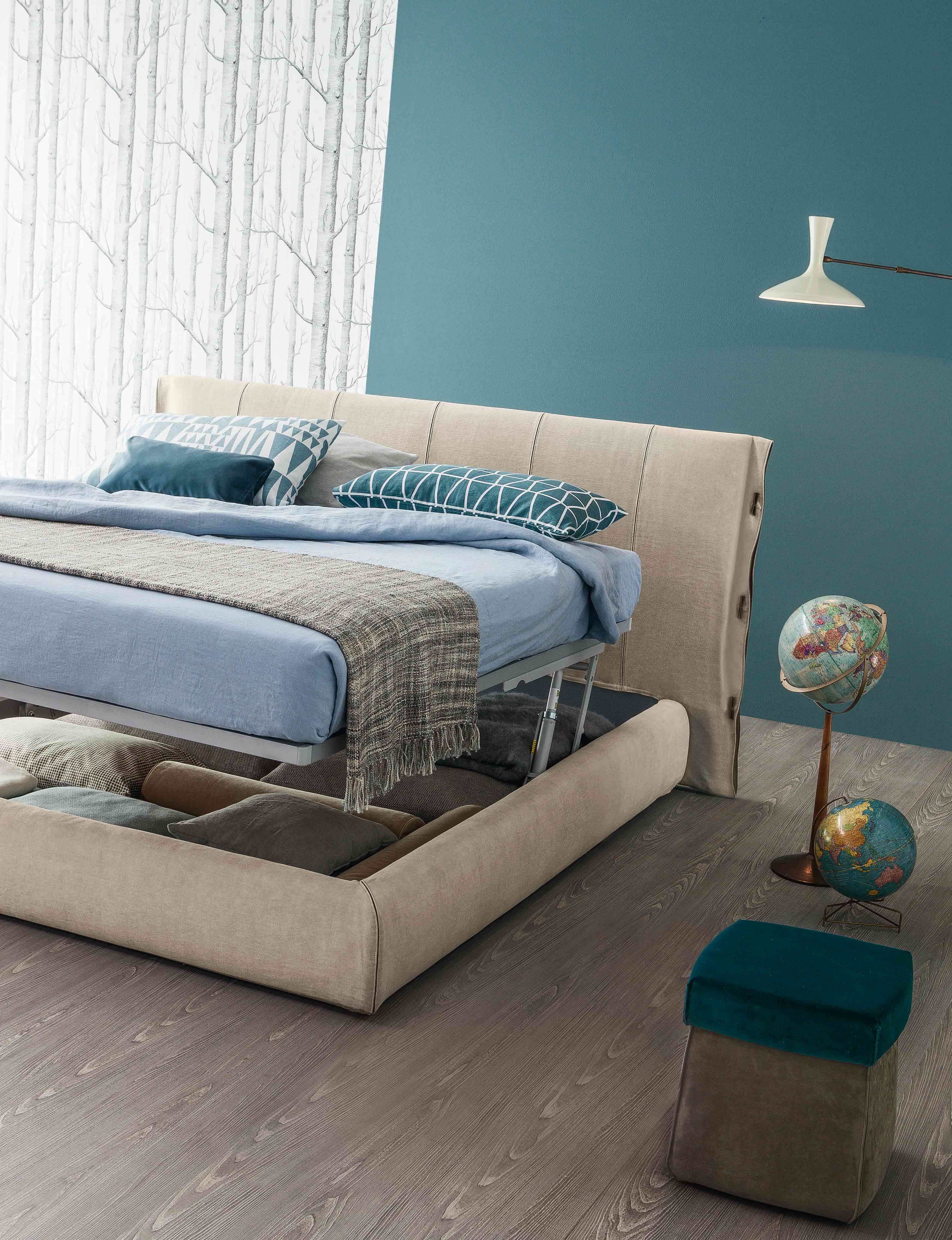 Cuff — дизайнерская двуспальная кровать с высоким мягким изголовьем, выполненная в современном стиле. Каркас кровати изготовлен из металла. Съемная обивка доступна в различных цветовых вариантах и может быть выполнена из текстиля, натуральной или искусственной кожи. Модель с вместительным контейнером для белья в основании (для доступа необходимо поднять решетку в изножье вместе с матрасом либо доступна версия с подъемным механизмом). Модель доступна в нескольких модификациях, различающихся габаритами. Более подробную информацию можно уточнить у менеджера.