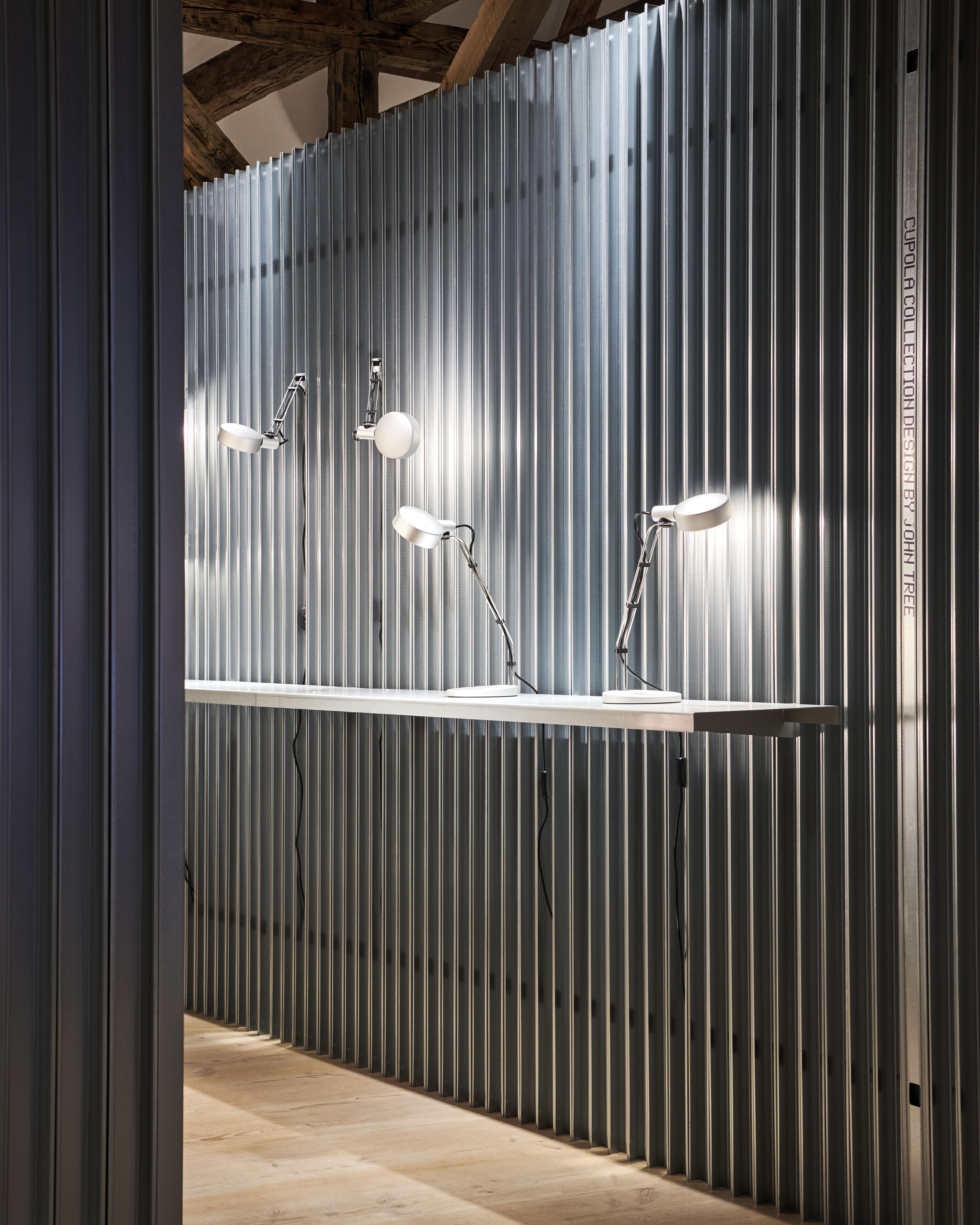 Корпус лампы изготовлен из прочного алюминия. Алюминий не только надёжен, но и сохраняет естественный цвет и текстуру материала. Строгий внешний вид в сочетании с округлыми формами придаёт лампе Cupola современный и лаконичный облик. Этот облик легко впишется в любой интерьер.