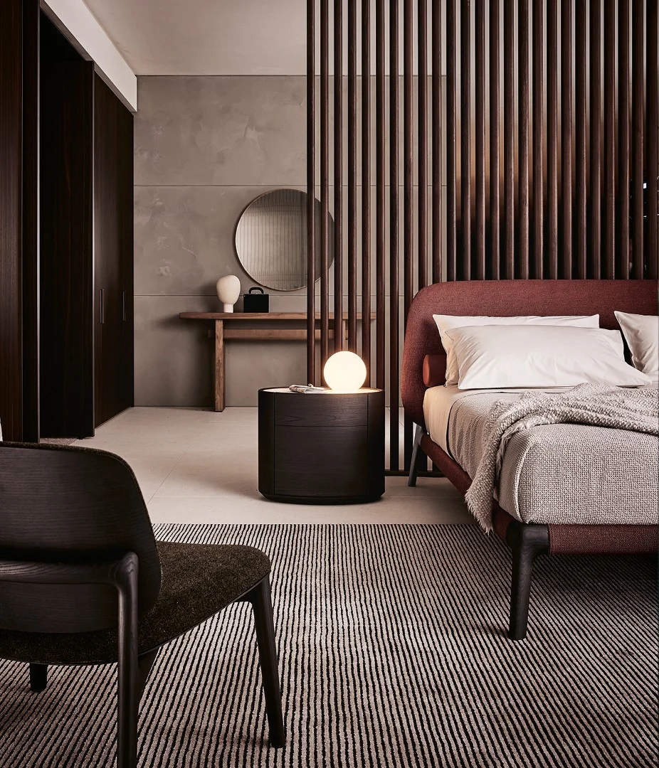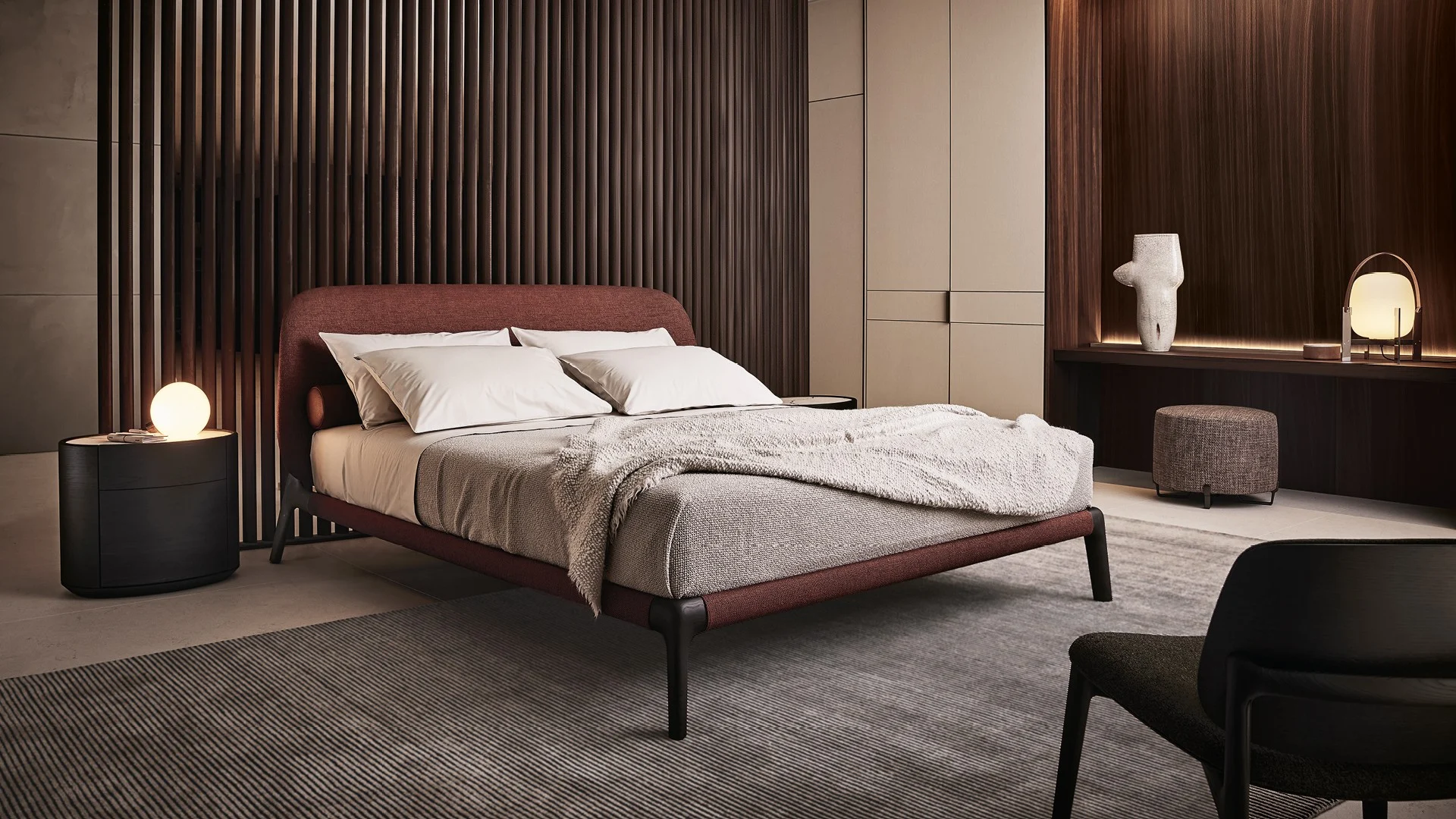 Мягкая подкладка скрыта за безупречной обивкой. Это превращает изголовье в удобную опору. Кровать становится не только стильной, но и исключительно комфортной. В модели читается характерная для Poliform вневременность. Она выглядит современно, но без нарочитой модности.