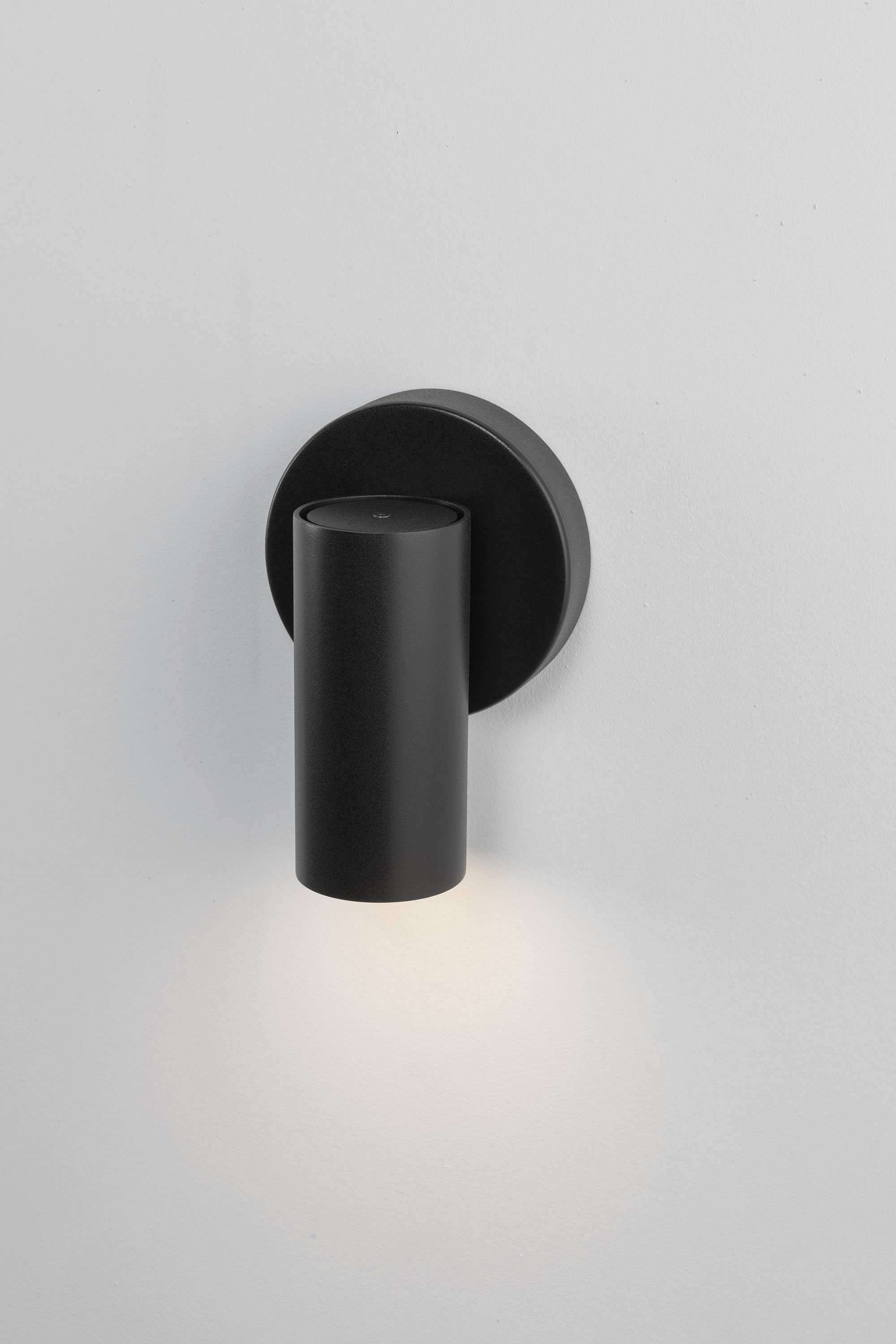 Cyls Wall — минималистичный настенный светильник с цилиндрической головкой в чёрном цвете. Он создаёт как акцентное освещение, так и мягкий рассеянный свет для уютной атмосферы.