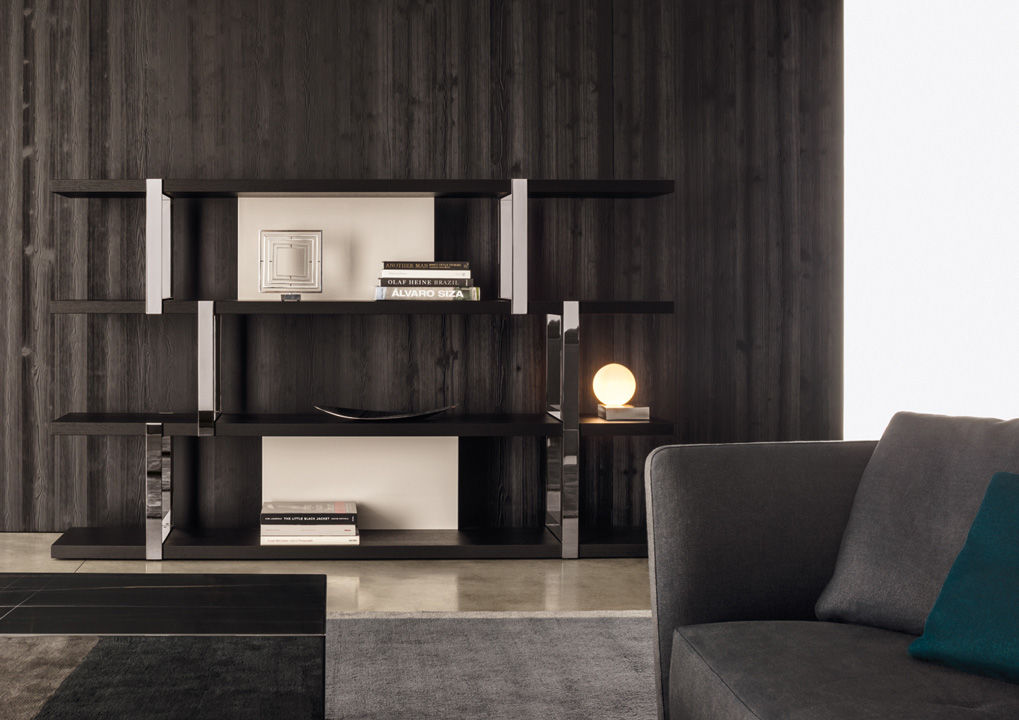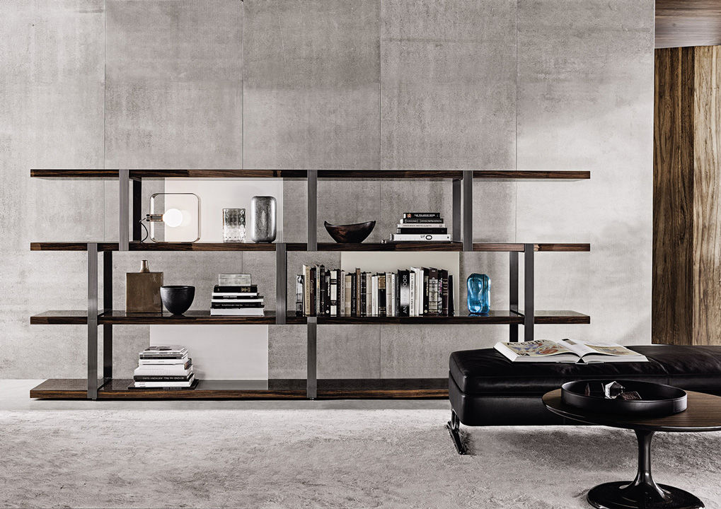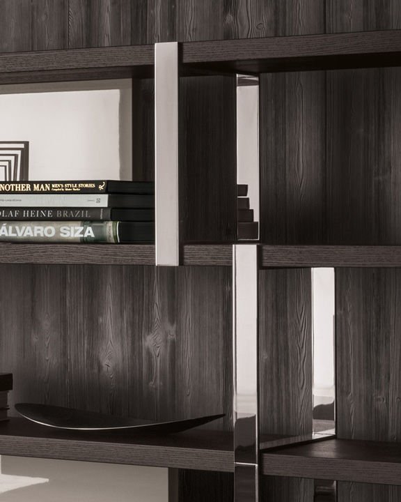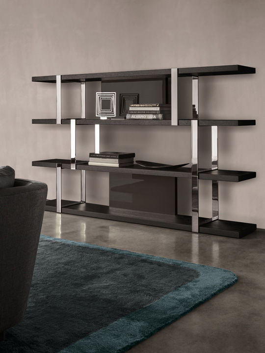 Полки стеллажа Dalton выполняются из качественной древесины. Для отделки используется лак в различных цветах. Вертикальные опоры изготавливаются из металла и покрываются лаком в трех вариантах: хромированный, графитовый или бронзовый цвет. Стеллаж также дополнен задними деревянными панелями. Доступно три варианта модели, различающиеся длиной. Более подробную информацию можно уточнить у менеджера или в PDF инструкции.n