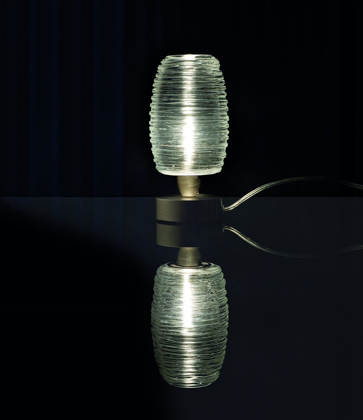 Коллекция создана с помощью техники "bozzolo", в которой оригинальный декор становится настоящим материалом: наложение нитей из расплавленного стекла служит для того, чтобы создать рельефную текстуру.nDamasco - это одна из самых успешных коллекций.nСветильник доступен в различных размерах и цветах: золото, черный, белый, прозрачный.