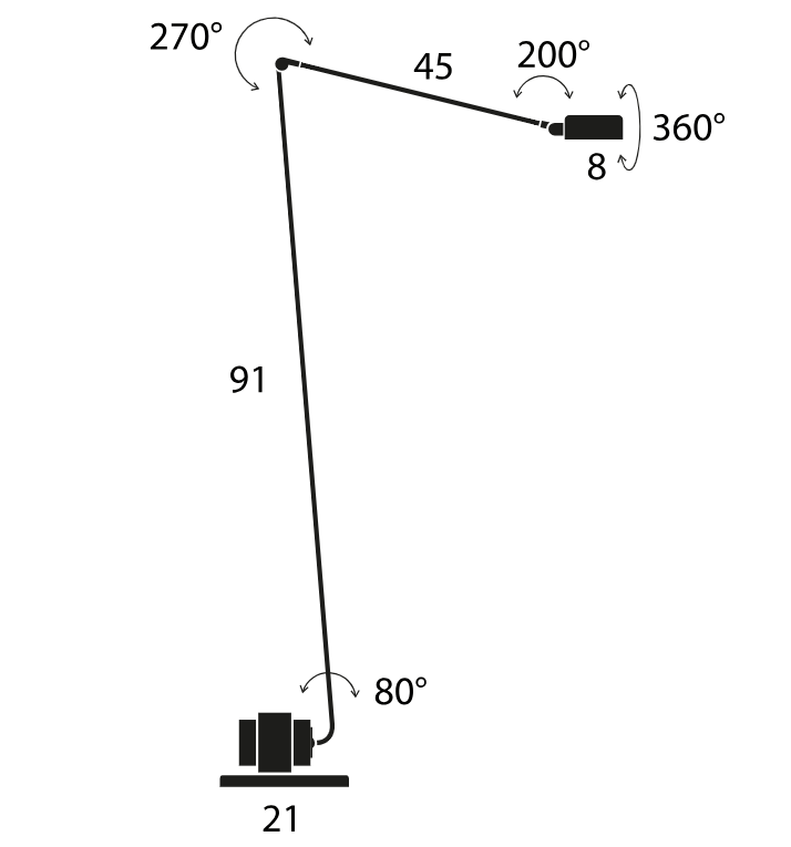 Кронштейн состоит из двух секций разной длины. Их пропорции тщательно выверены и выглядят эстетично. Каждую секцию можно установить под нужным углом. Благодаря этому, меняя их взаимное положение и настраивая рассеиватель, можно создать множество вариантов освещения. Свет будет падать именно так, как требуется в конкретной ситуации.