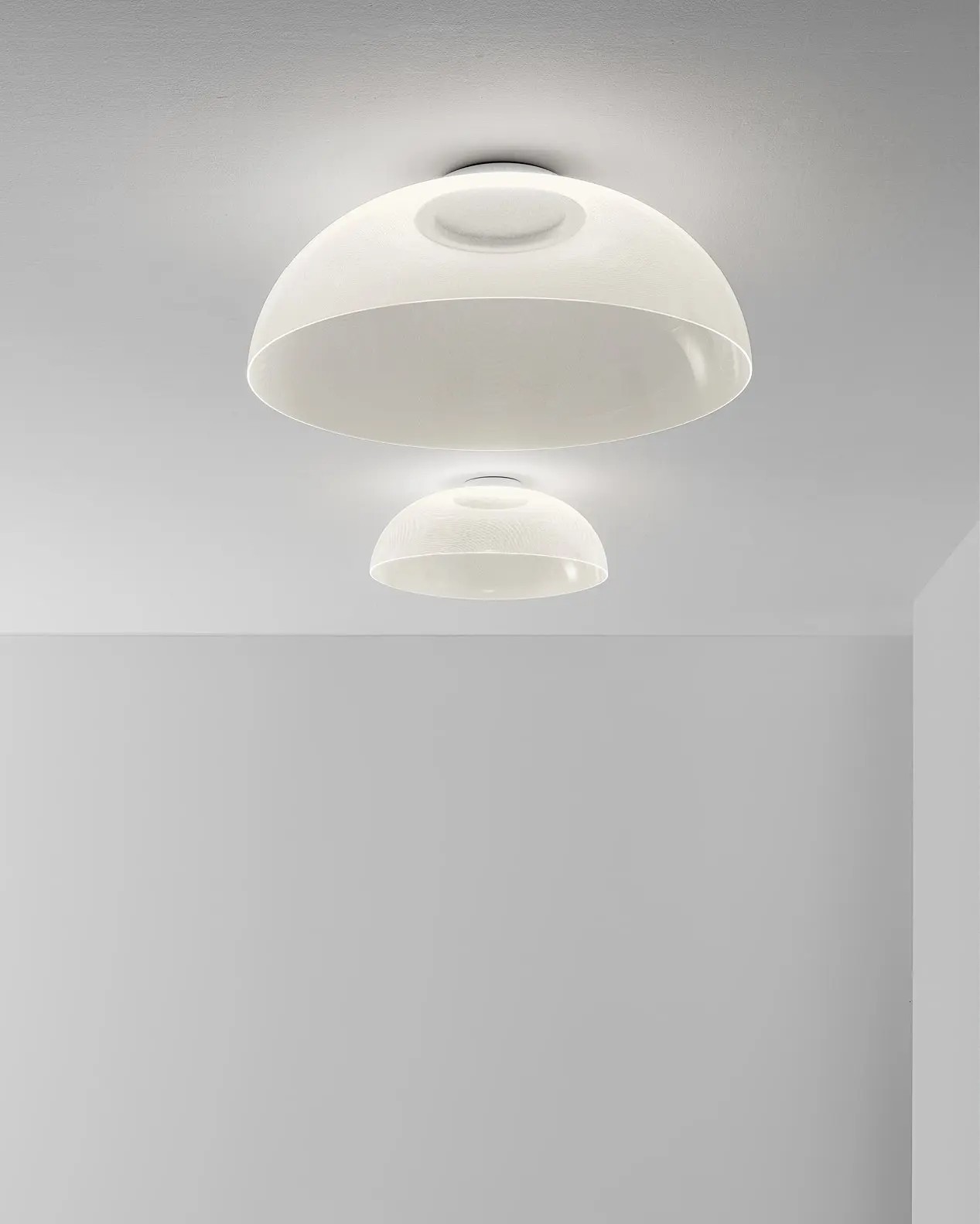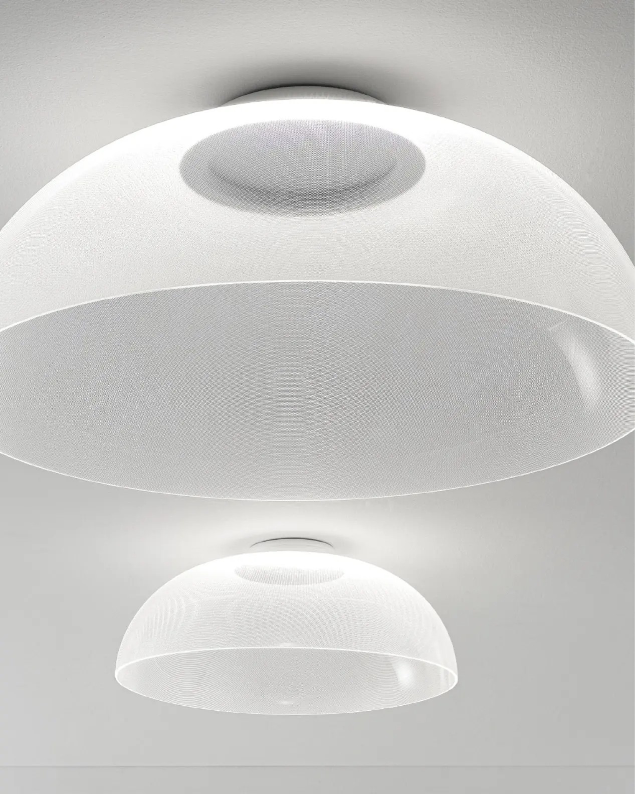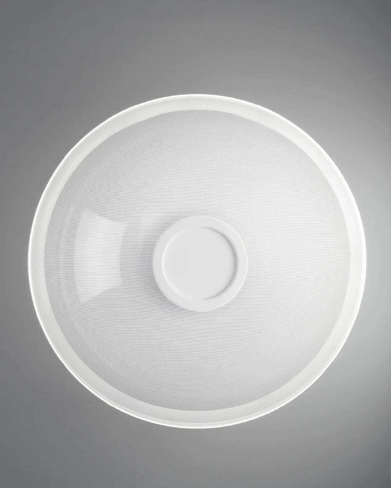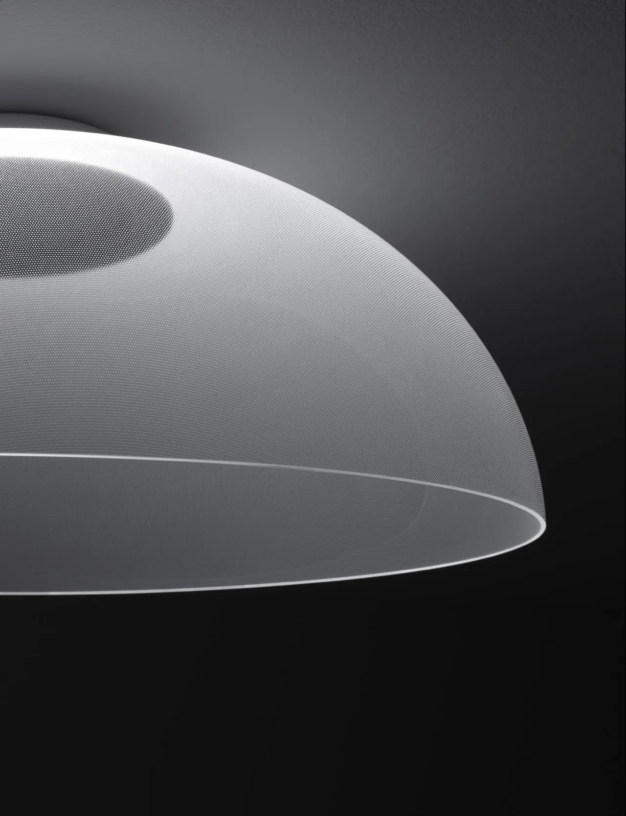 Светильник Demì Wall/Ceiling поражает своей способностью меняться в зависимости от состояния. Когда он выключен, перед вами — изящный прозрачный купол, в котором удивительным образом сочетаются лёгкость и благородная сдержанность. Его чистая форма и прозрачность создают ощущение невесомости, при этом сохраняя внушительность силуэта.