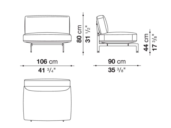Ортогональная структура кресла построенная на четких геометрических принципах, создает впечатление фундаментальности и устойчивости. При этом сохраняется удивительная легкость визуального восприятия.