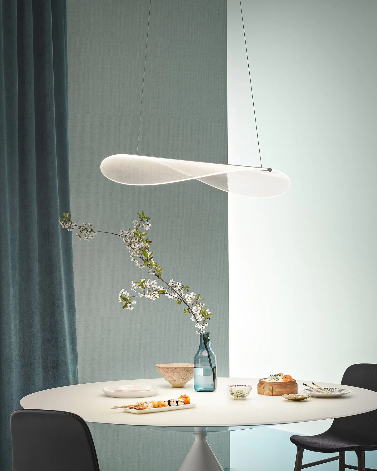 Diphy Suspension универсален: он прекрасно смотрится как в жилых помещениях любого стиля — от классического до скандинавского, так и в коммерческих пространствах — ресторанах, кафе, офисах и гостиницах. Светильник привносит в обстановку уют и тепло, подчёркивая индивидуальность каждого пространства.
