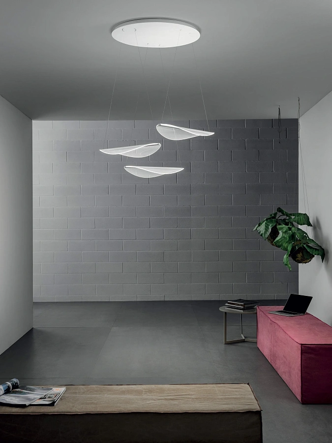 Diphy Suspension — элегантный подвесной светильник, вдохновлённый красотой природы. Его дизайн воспроизводит игру света сквозь листья, объединяя природную эстетику с современными технологиями.