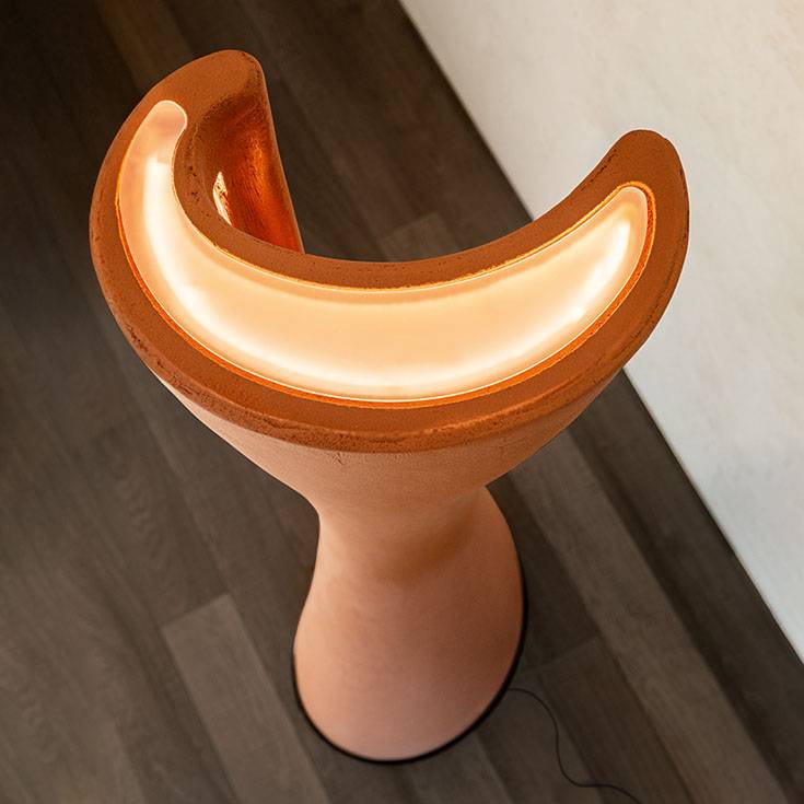 Diploma — это скульптурный торшер, рожденный на стыке архитектуры и искусства. Модель преображает современное жилое пространство, наполняя его атмосферой арт-галереи. Мягкий рассеянный свет, идеальный для релаксации в зоне отдыха, создается с помощью интегрированной светодиодной ленты, которая подчеркивает тактильную красоту керамической поверхности. Абажур выполнен из натуральной глины с уникальной текстурой. Каждый экземпляр Diploma уникален — природные особенности глины делают его живым произведением искусства. Торшер гармонично вписывается в интерьеры разных стилей, от классических гостиных до современных пространств, становясь вечным символом утонченного вкуса.