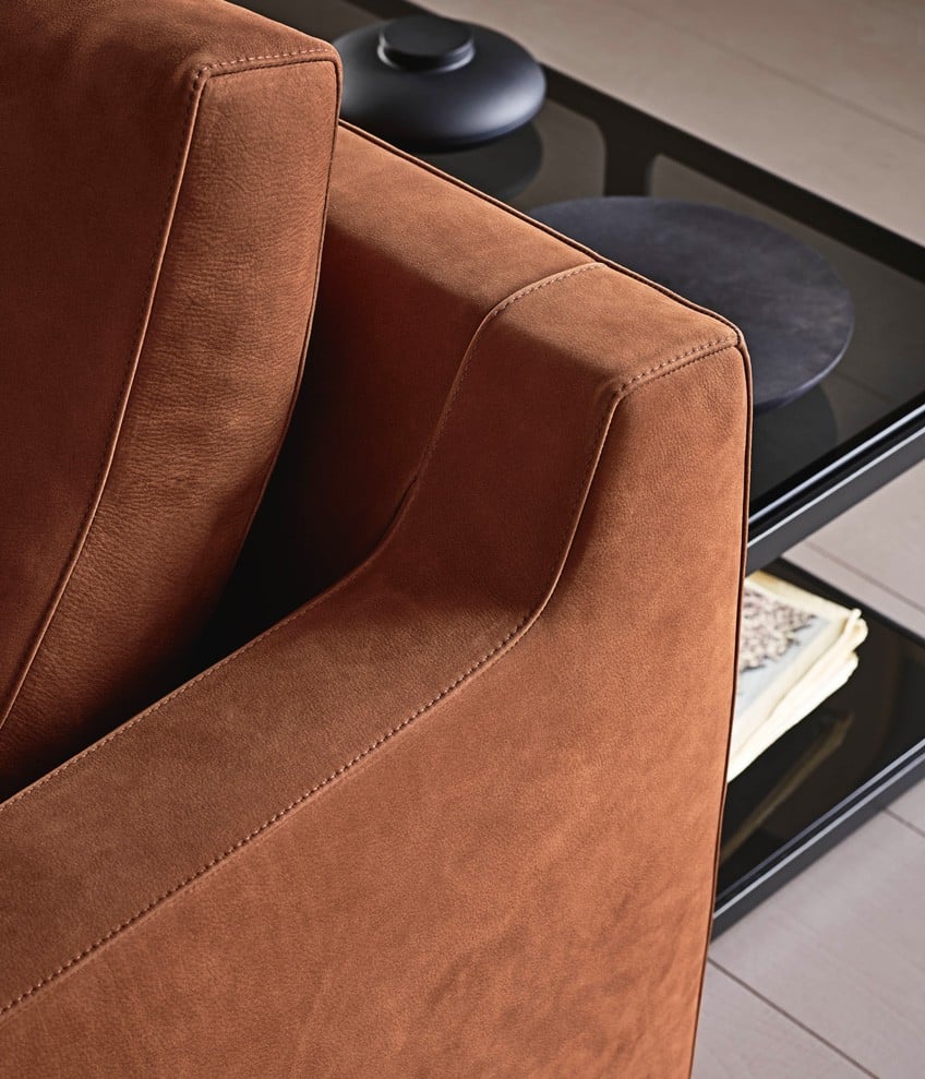 Металлические элементы дивана подчеркивают его современный характер. Ножки из окрашенного литого алюминия придают устойчивость и стильный вид, а алюминиевый профиль с качественным покрытием завершает лаконичный и изысканный дизайн.