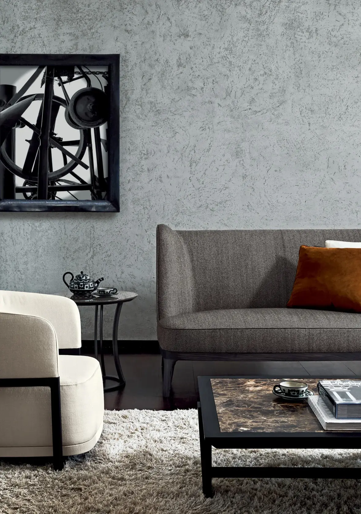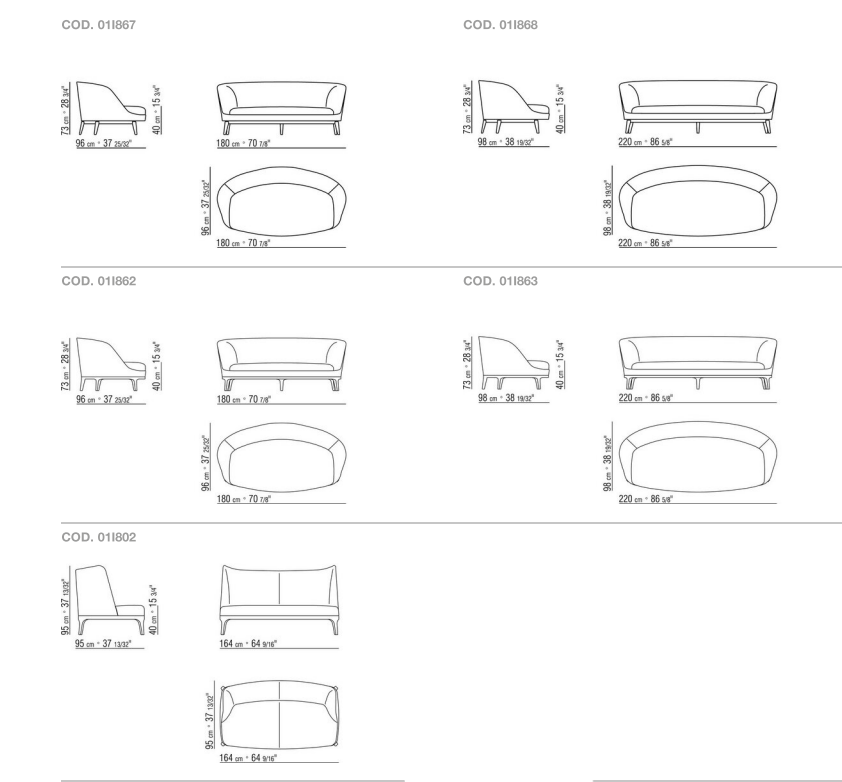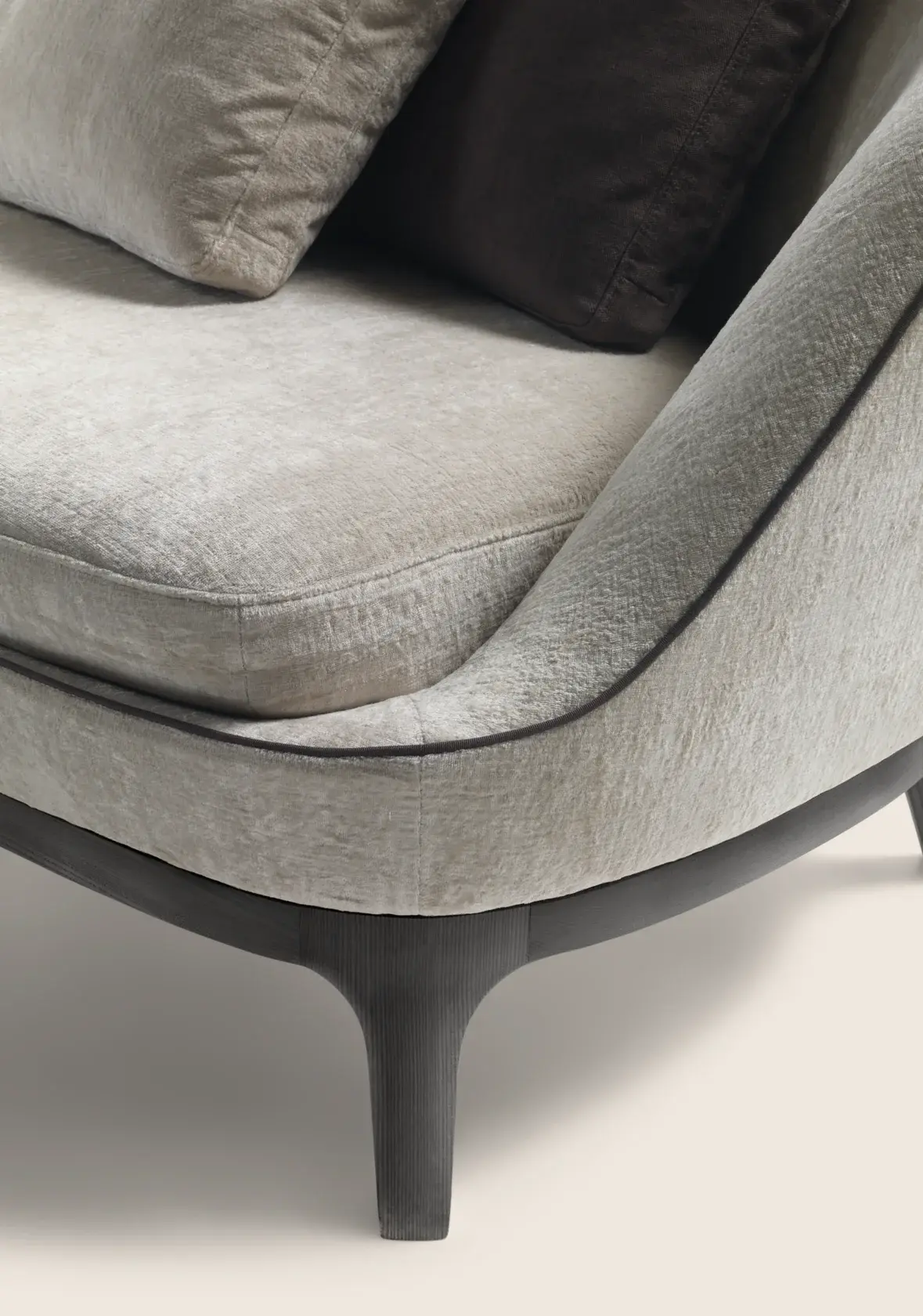Опорные элементы дивана — элегантные ножки. Они могут быть выполнены из литого под давлением алюминия или из массива дерева. Оба материала предлагают различные варианты отделки, неизменно изысканные.