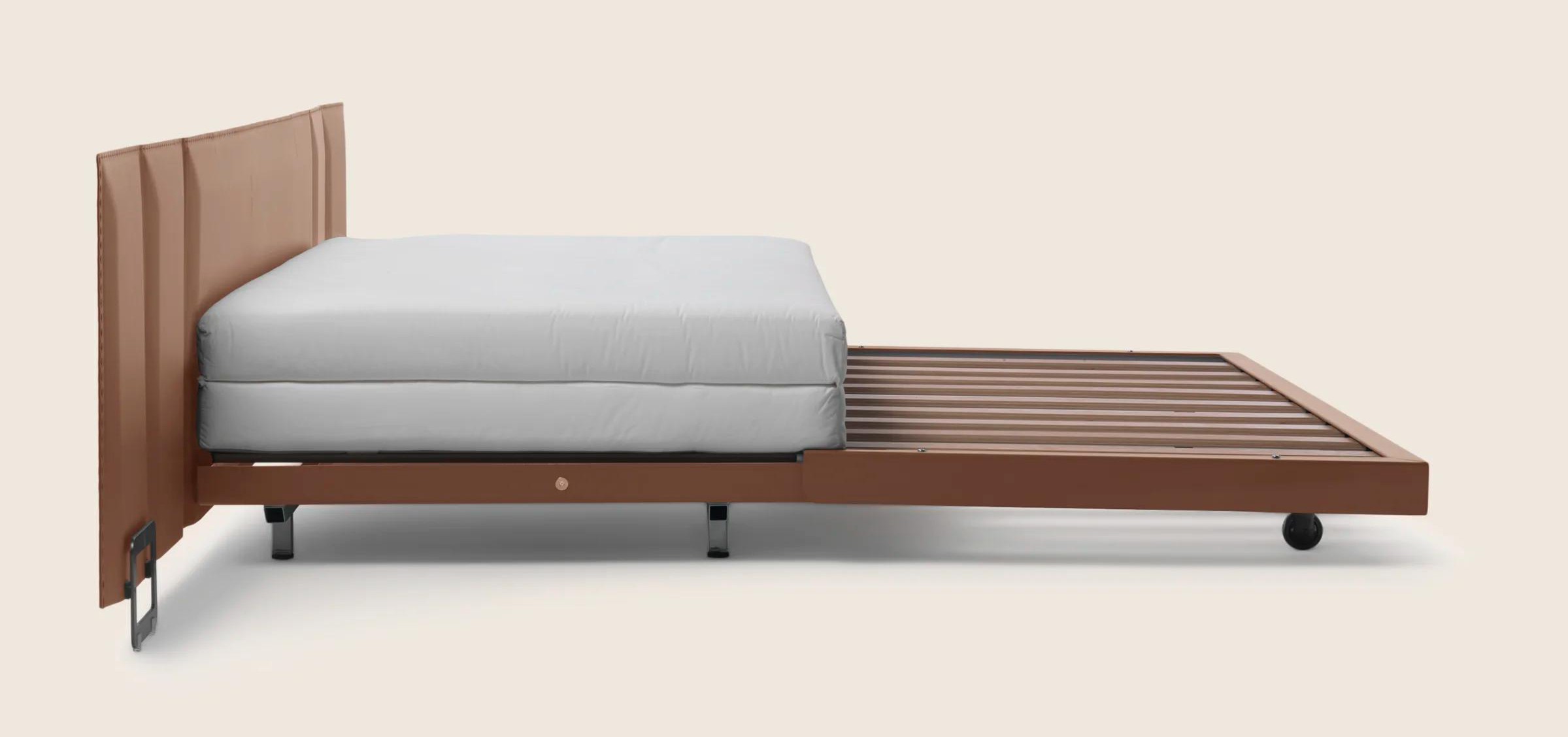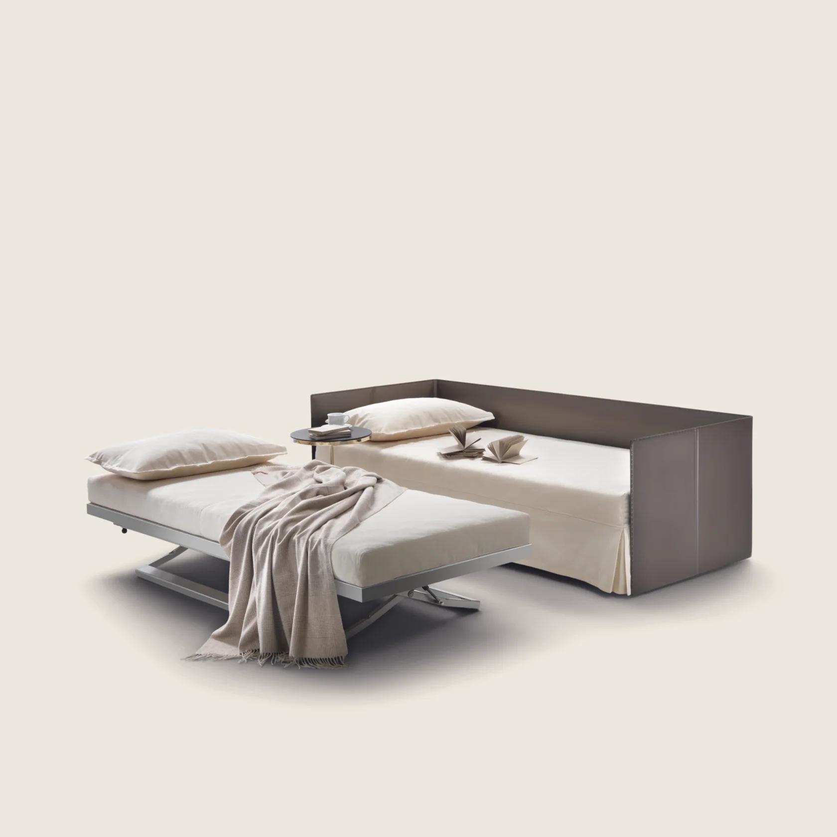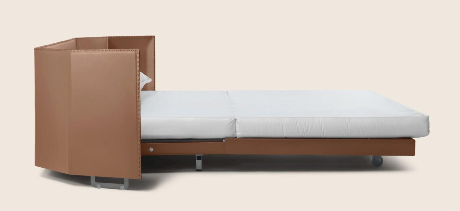 Элегантный диван-кровать Eden сочетает в себе утонченный дизайн и безупречное качество исполнения. Доступный в односпальном и двуспальном вариантах, он станет изысканным дополнением современного интерьера. Чёткие линии и продуманные пропорции подчеркивают сдержанную эстетику модели, а использование натуральной кожи придает ей особый шарм. Этот благородный материал не только выглядит роскошно, но и создает ощущение вневременной классики, сохраняя актуальность вне зависимости от меняющихся тенденций.