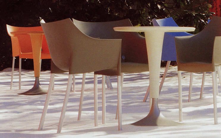 Вам не нужно думать о том, как подобрать стол к стульям. У стула Dr NO располагается Dr. NA, круглый столик – отличное дополнение к стулу. Лакированная, нецарапающаяся столешница и тонкая центральная ножка из пластика и алюминия позволяют использовать Dr. NA вне помещений, образуя с креслом идеальный тандем.