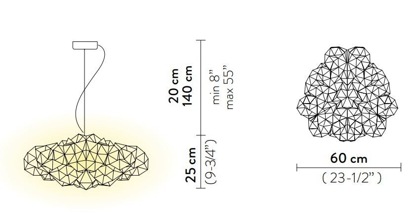 Drusa Suspension идеально подходит для различных интерьеров, от современных минималистичных до уютных классических. Его универсальность позволяет использовать светильник как в жилых помещениях, так и в офисах, гостиницах и ресторанах. В любом интерьере Drusa Suspension станет ярким акцентом, придавая ему индивидуальность и шарм.