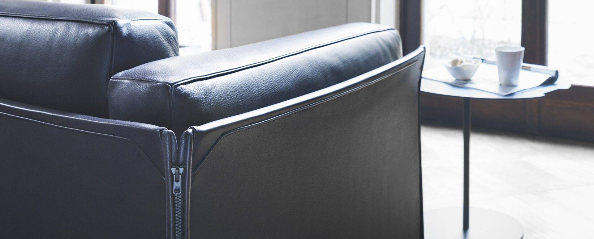Двухместный диван Duc итальянской фабрики Cassina источает уют и манит своим комфортом. Каркас дивана представляет собой панели со стальной структурой и полиуретановой CFC-free пеной. В местах соединения спинки и боковин расположены декоративные застежки-молнии. Полиуретановые подушки имеют прокладку из полиэстра. Возможные варианты отделки: кожа или ткань с кожаным кантом различных цветов. Ножки дивана изготовлены из черного пластика. Более подробную информацию можно уточнить у менеджера.