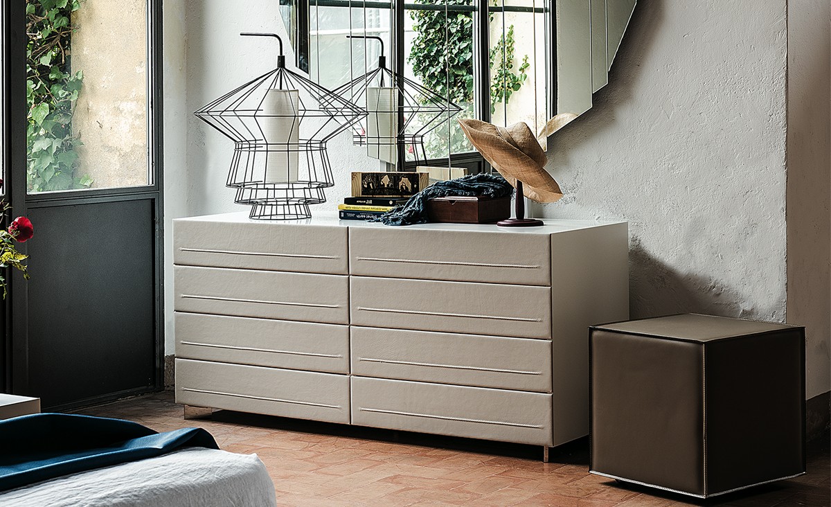 DYNO — это коллекция современных прикроватных тумб и комодов, в которой сочетаются лаконичный дизайн и элегантные детали. Модели характеризуются чистыми линиями и эссенциальным внешним видом. Классическая деревянная конструкция дополнена фасадами, обитыми натуральной кожей или высококачественной экокожей, доступными в широкой палитре изысканных цветов.