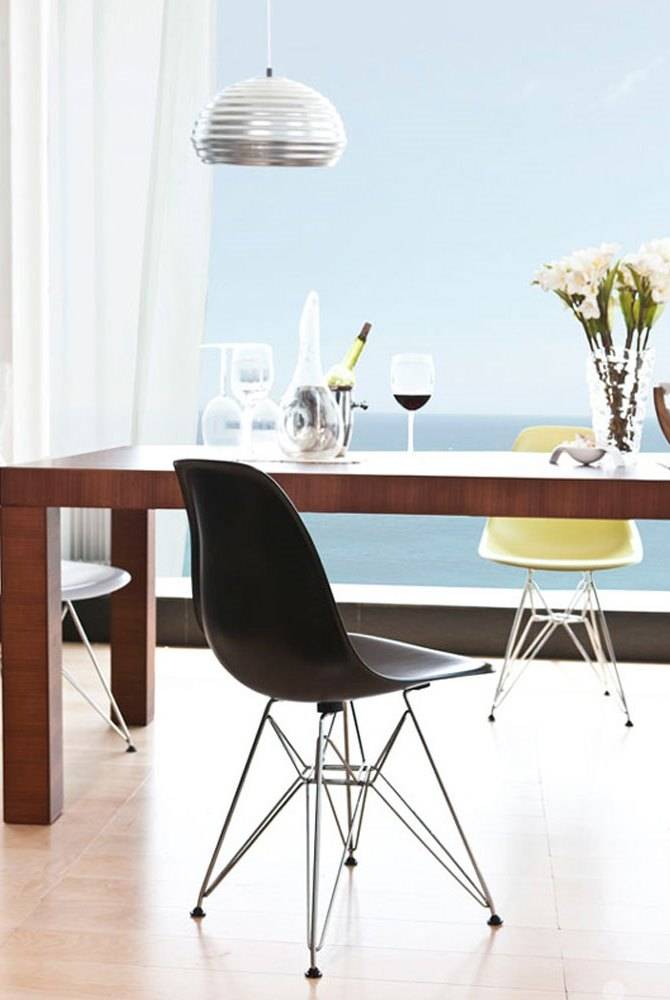 Стул Eames Plastic DSR выполнен в современном стиле. Модель оснащена ножками в необычном дизайнерском исполнении. Ножки изготовлены из металла, а спинка и сиденье — из полипропилена. Стул может быть без обивки, с мягкой подушкой (привинченной к раме сиденья) или с обитыми тканью сиденьем и спинкой. Основание модели изготавливается в двух цветах: хром и черный. В коллекцию входят стулья с деревянными и металлическими ножками и офисный стул на колесиках. Более подробную информацию и варианты расцветок можно уточнить у менеджера.