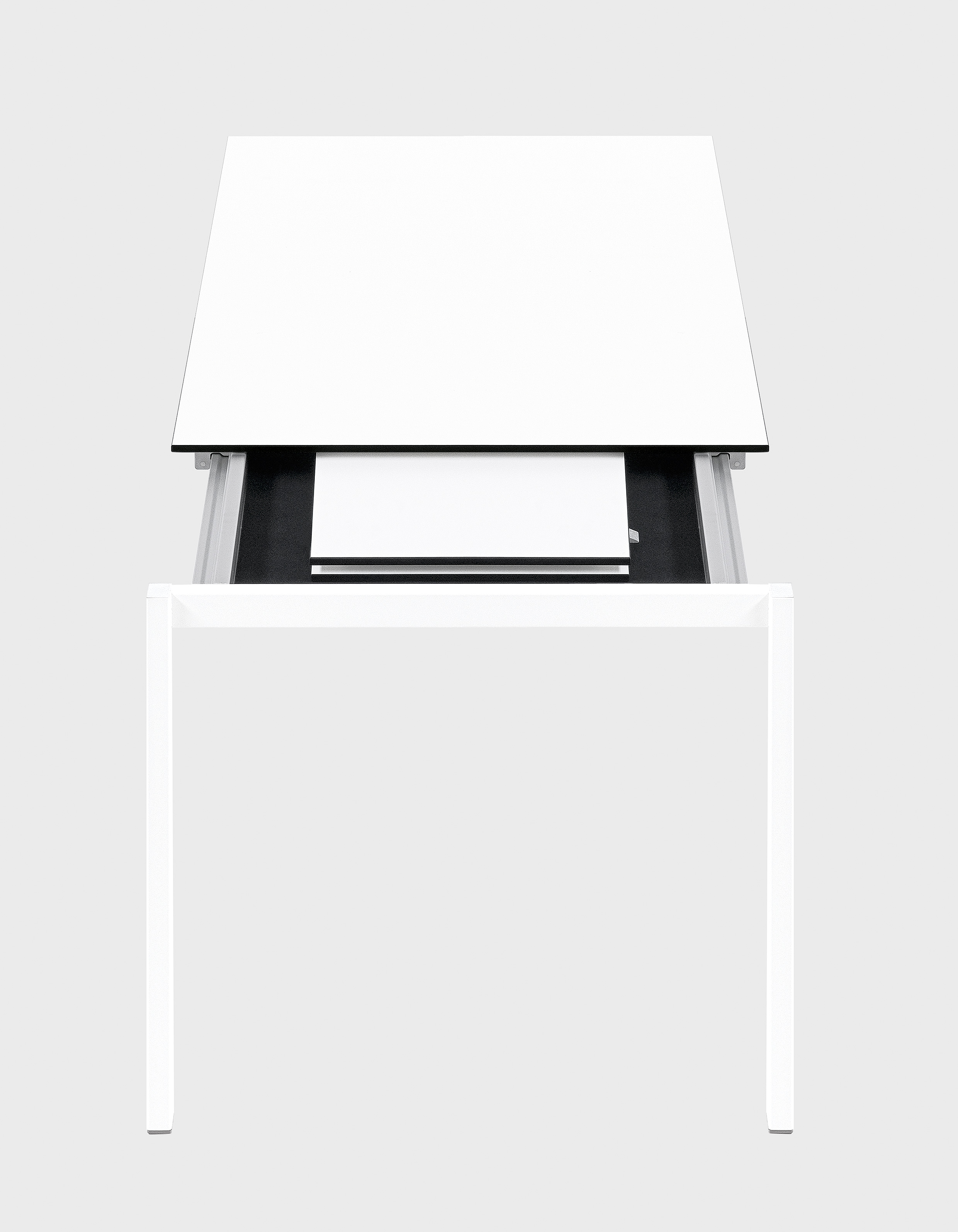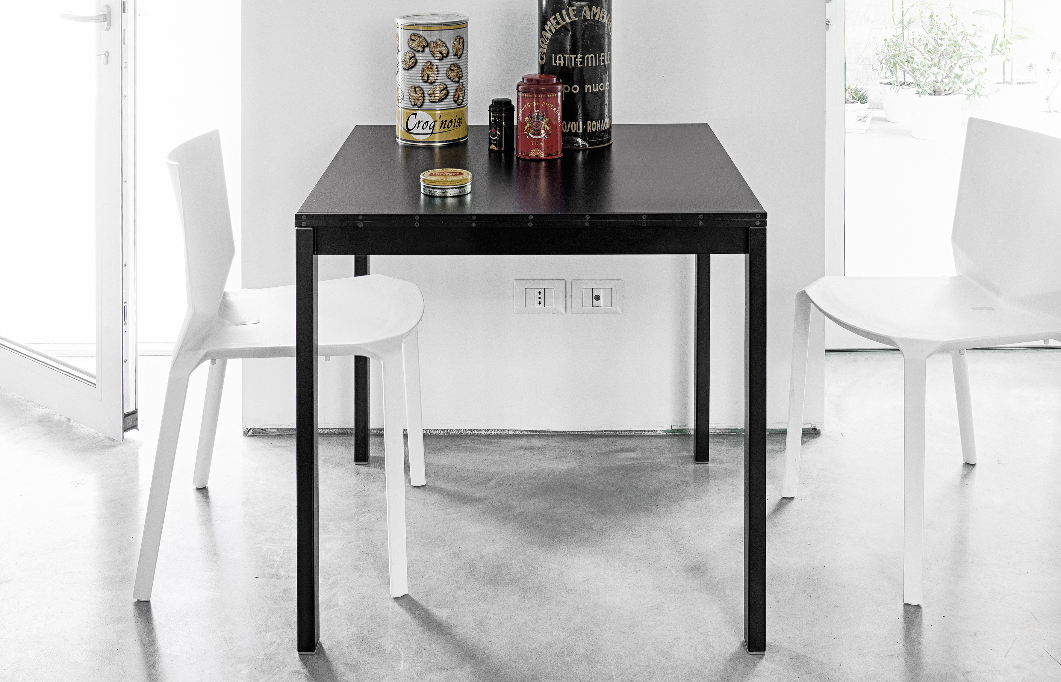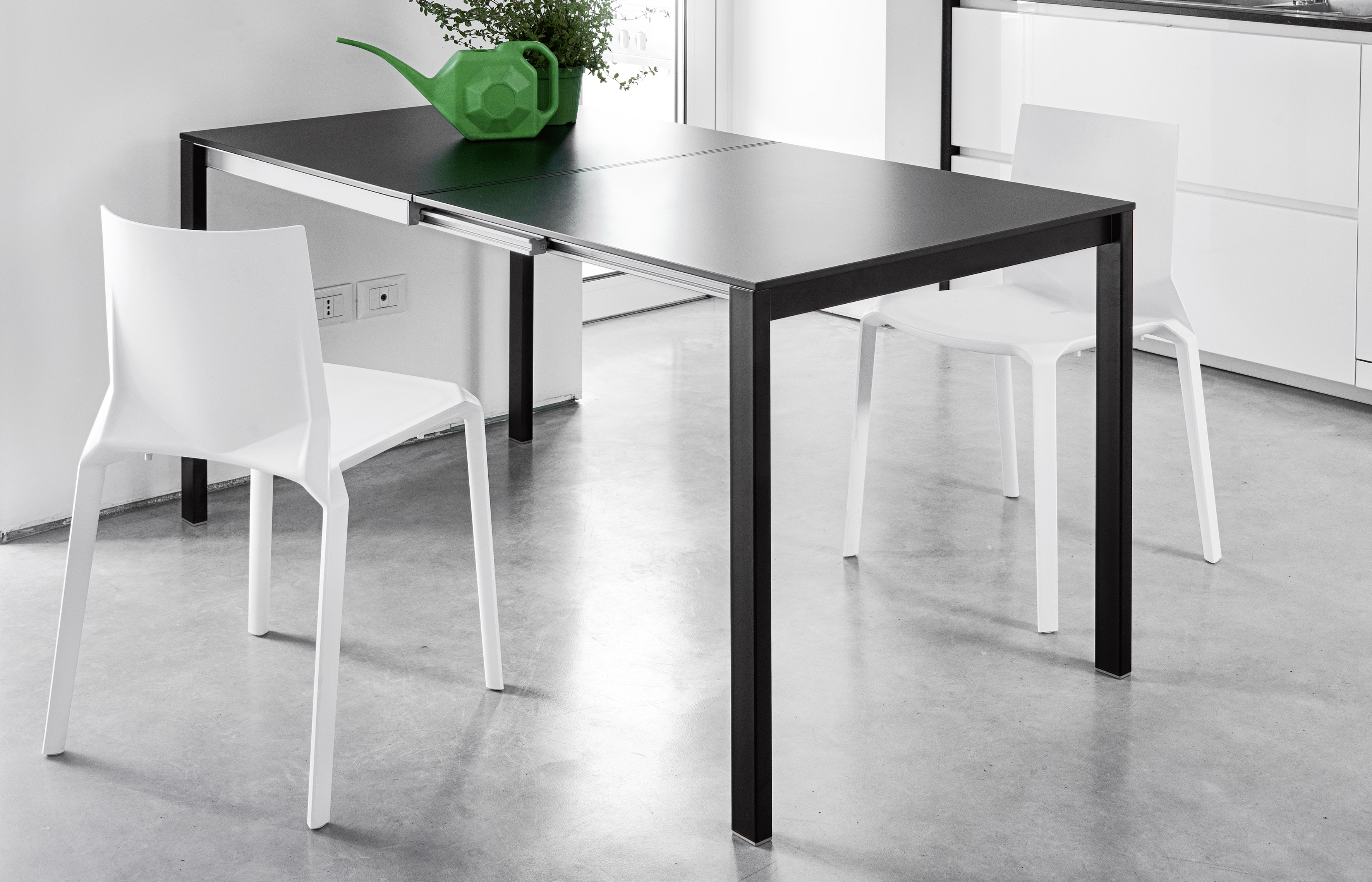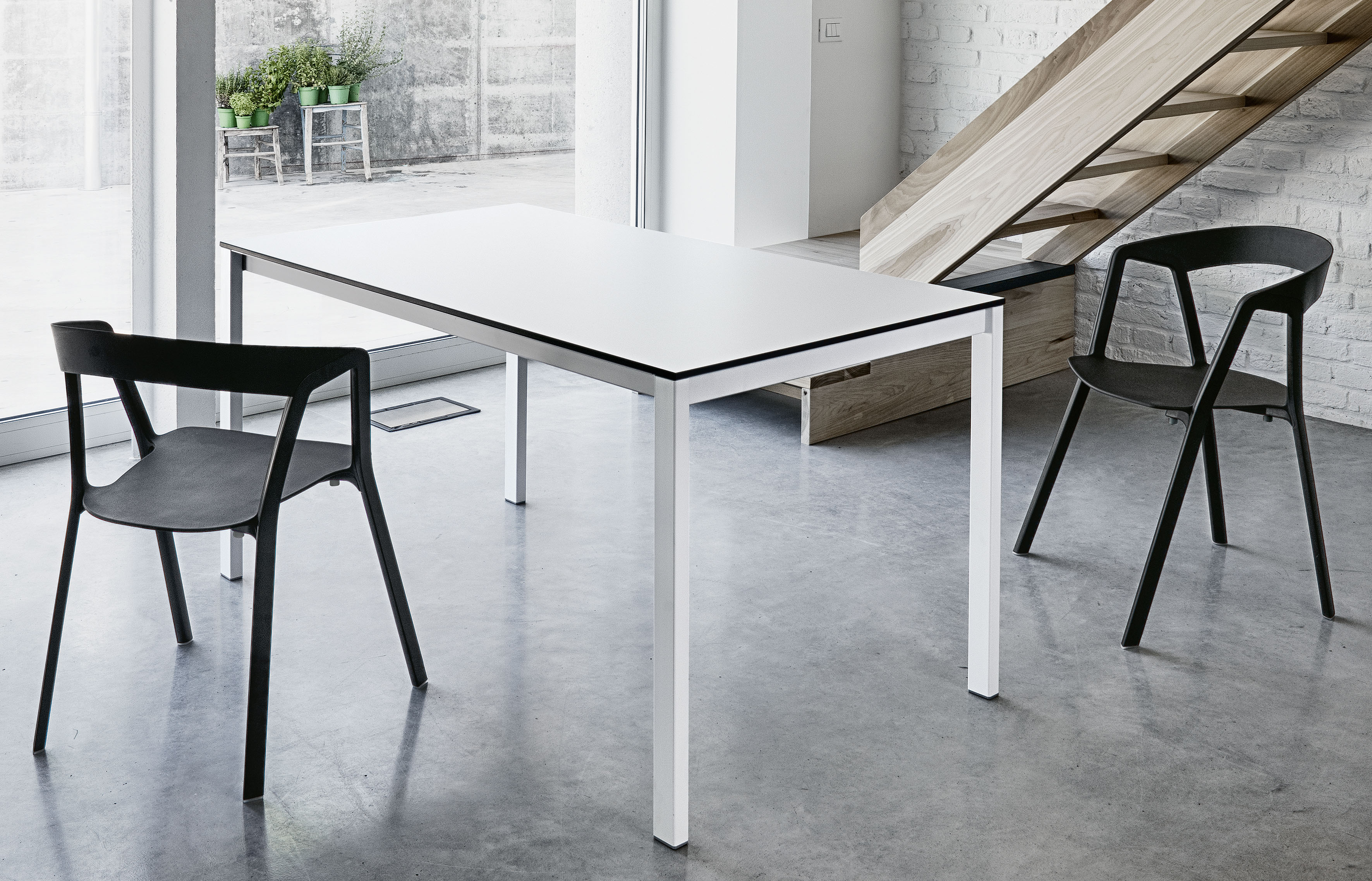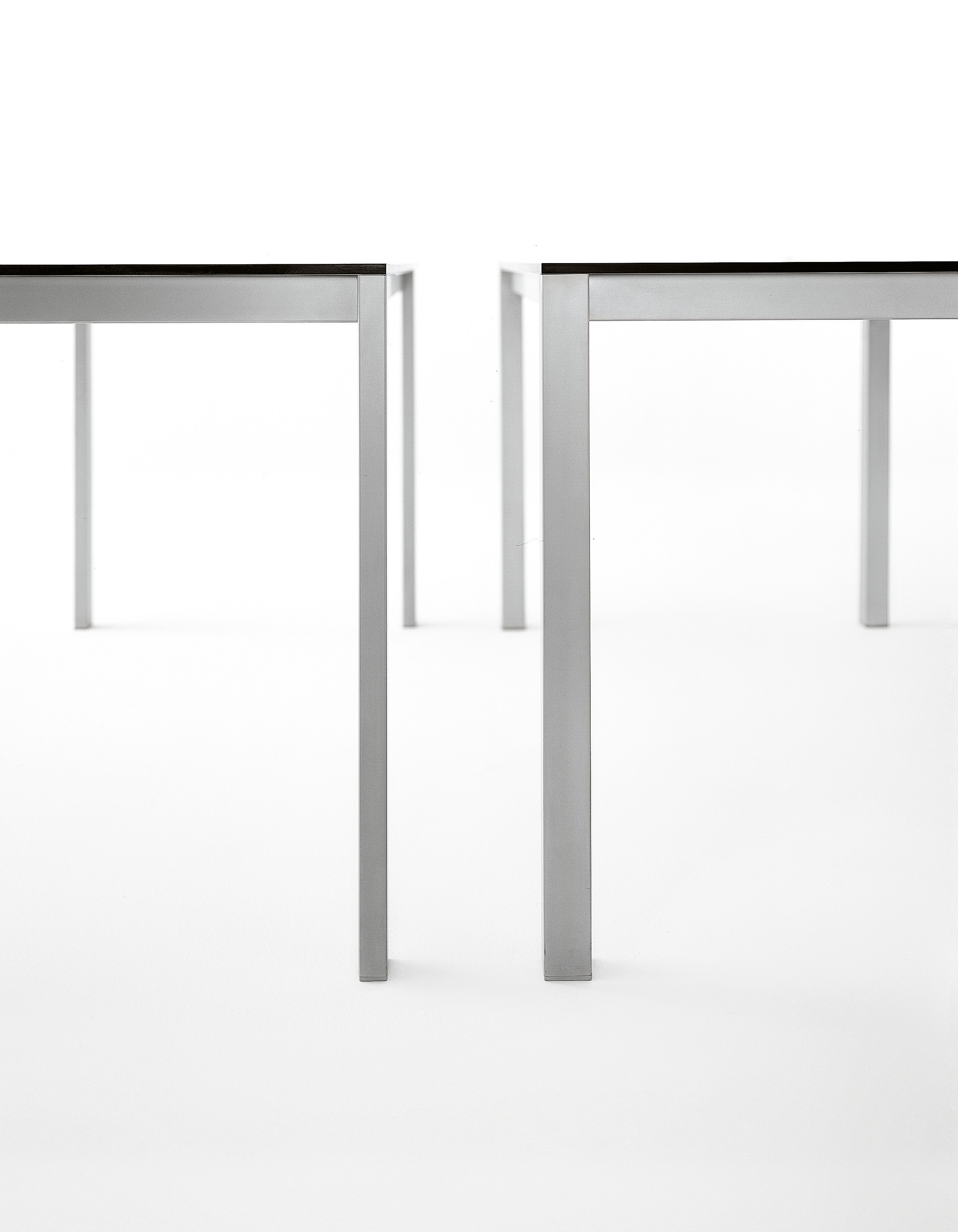 Ножки стола Easy изготавливаются из полированного алюминия и покрываются лаком в черном или белом цвете. Столешница выполняется из ламината в двух вариантах цвета: черный или белый. Доступно три размера стола. Есть возможность заказать модель с раздвижным топом. Детали о данной модели уточняйте у менеджеров или в PDF инструкции.