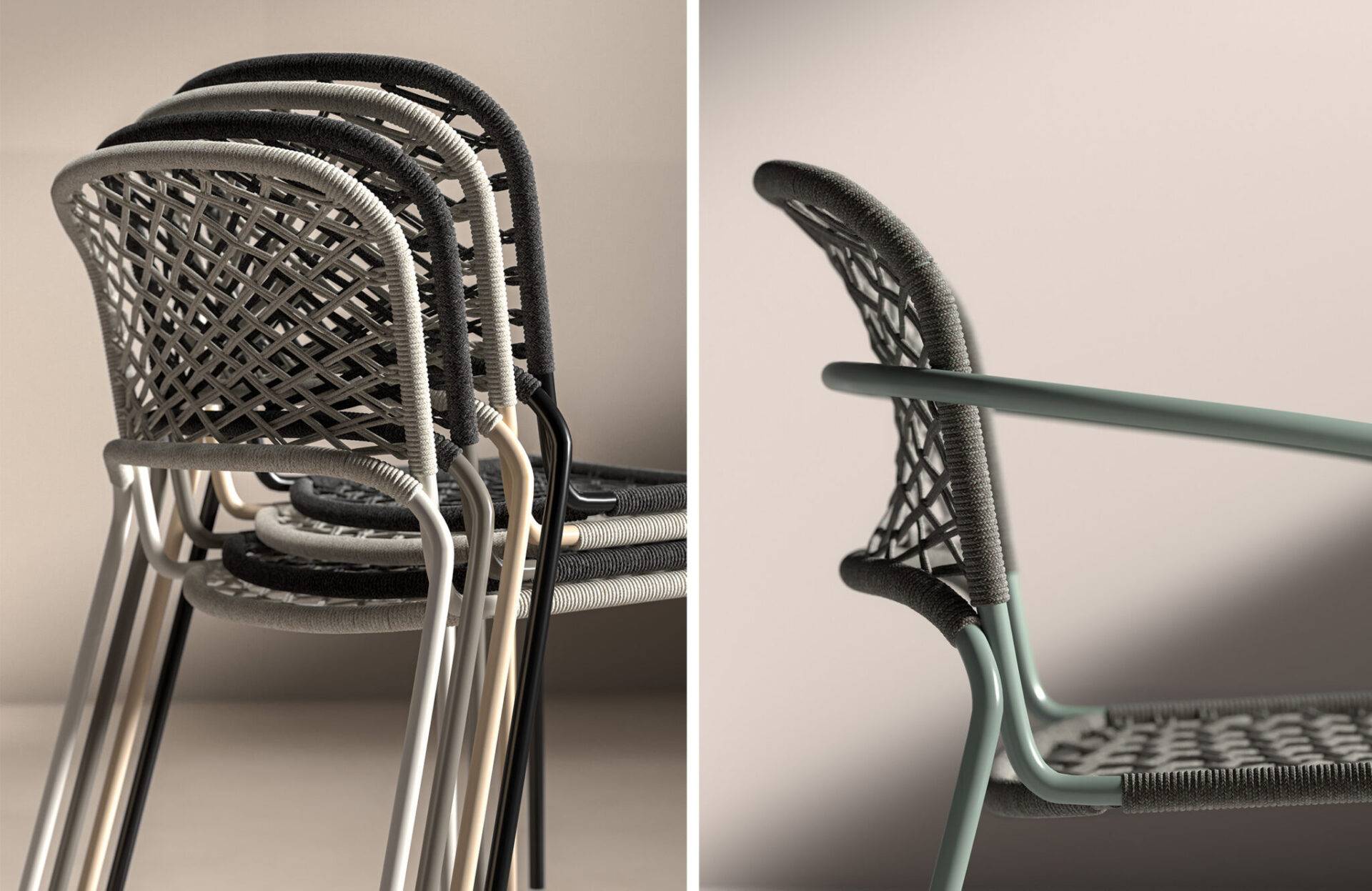 Универсальность модели заключается в возможности выбора отделки. Клиенты могут выбрать цвет и текстуру канатной оплётки, а также цвет стальных опор. Это позволяет адаптировать стулья под любой интерьер, от минималистичного до эклектичного. Независимо от выбранного варианта, стулья Eau Rouge всегда будут выглядеть стильно и современно.