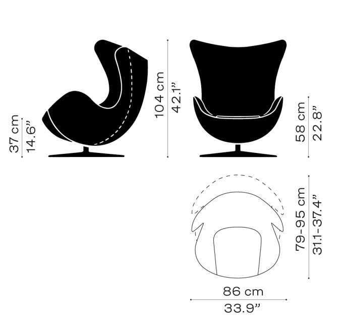 Обивка: Широкий выбор тканей и кожи позволяет подобрать кресло Egg, идеально сочетающееся с любым интерьером.