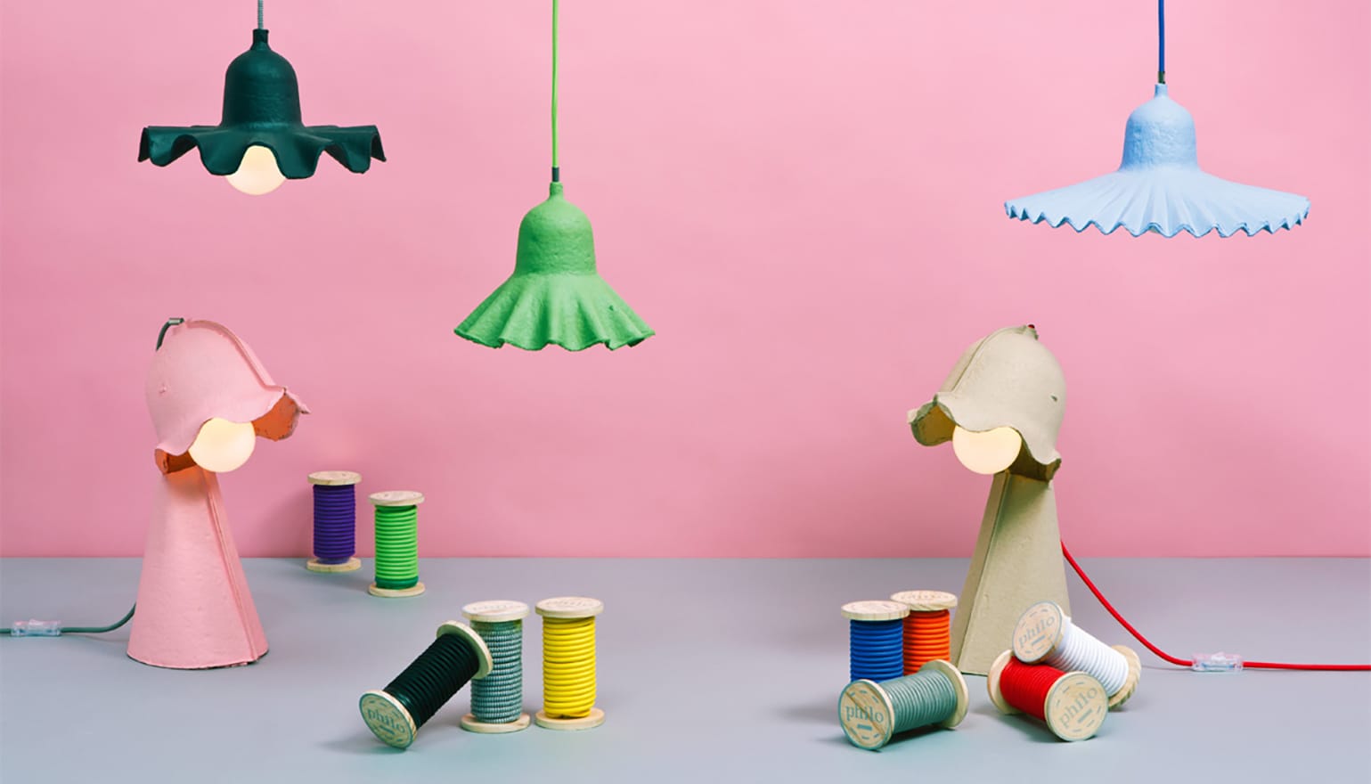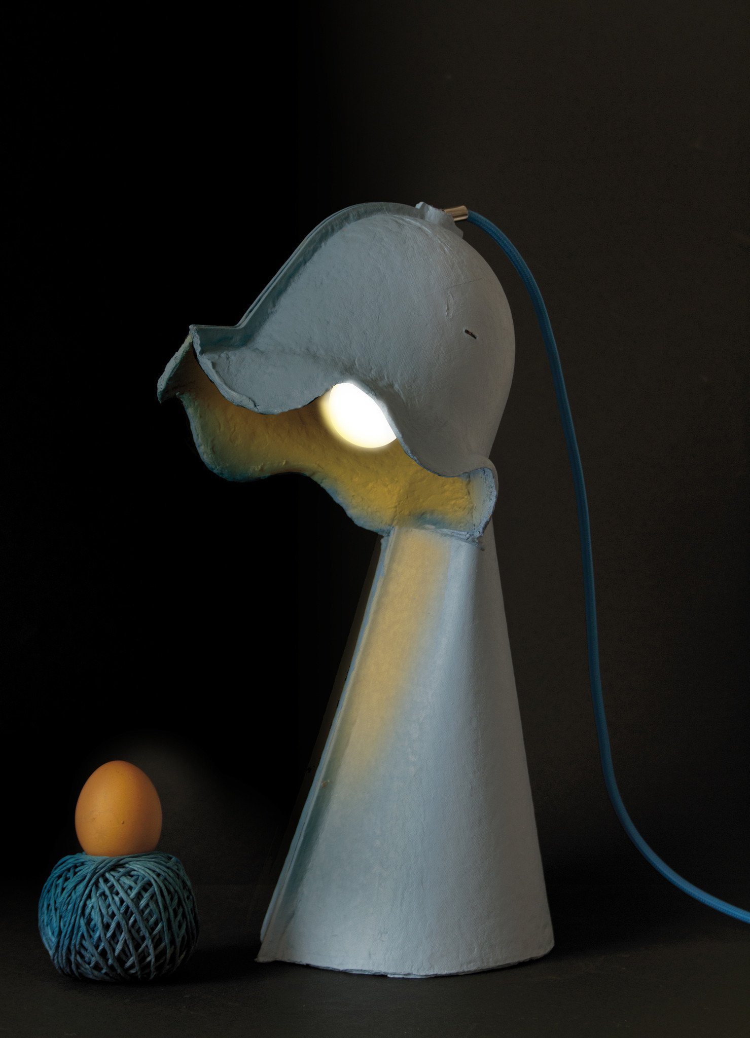 Коллекция Egg of Columbus включает в себя настольные и подвесные лампы. Светильник изготавливается из картона и керамики. Доступно пять вариантов цвета: бежевый, синий, розовый, зеленый и антрацит. Текстильный кабель можно приобрести отдельно в различных цветах. Подробности о данной модели уточняйте у менеджеров или в PDF инструкции.