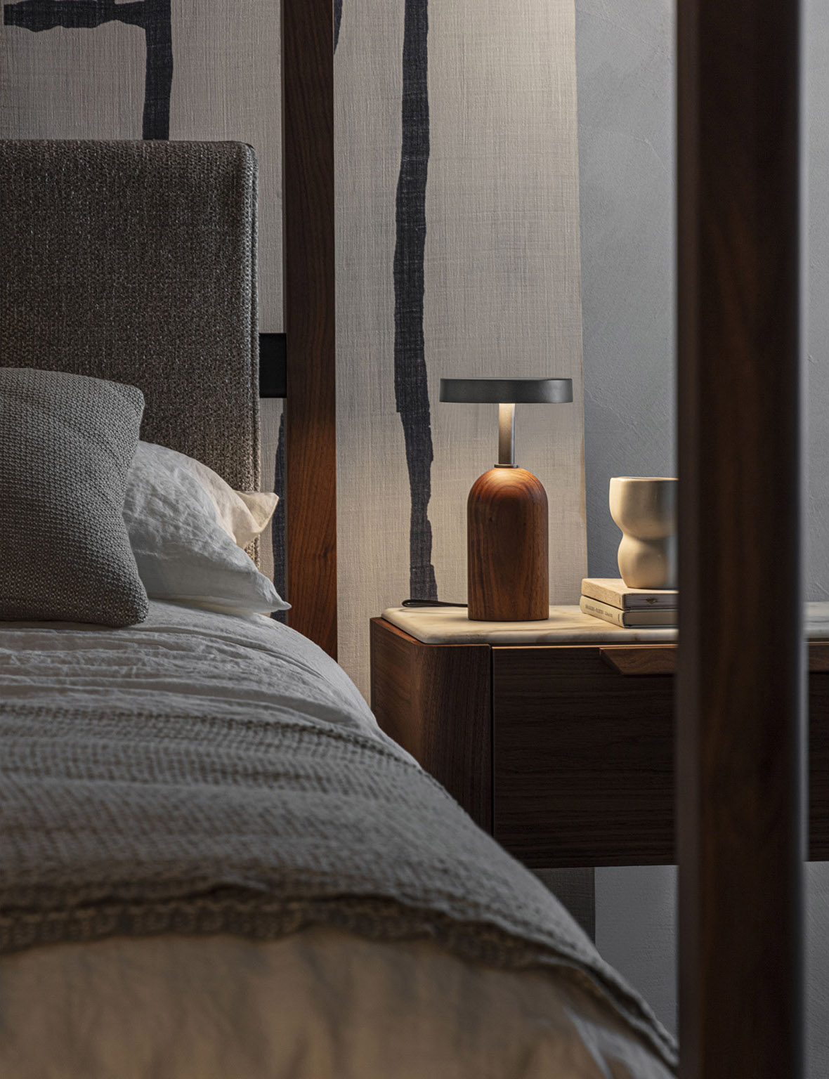 Новинка Ekero Move представляет собой первую беспроводную настольную лампу Porada. Она сохраняет DNA коллекции. Как и в модели Fix, здесь использованы благородный орех canaletta, металл Peltro и метакрилат. Сенсорное управление делает взаимодействие с лампой интуитивным. Встроенная аккумуляторная система с зарядкой через USB-C обеспечивает мобильность. Она позволяет использовать светильник в любом уголке интерьера без привязки к розетке.