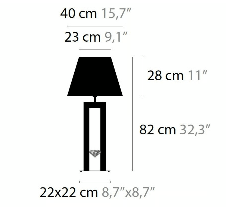 Кристалл изготовлен из высококачественных материалов, которые обеспечивают исключительное преломление света. Его ромбовидная форма переливается гранями, создавая изящный металлический дизайн. Вместе это придает светильнику неповторимый и запоминающийся облик.
