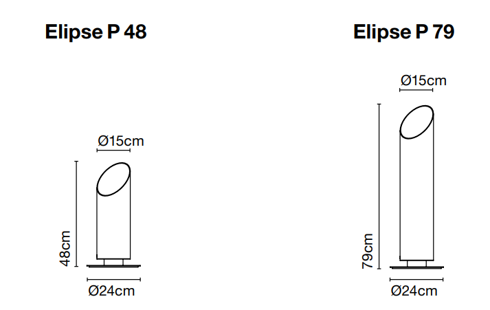 Доступный в двух цветах — графитово-сером и коричневом — светильник может использоваться как в одиночном исполнении, так и в групповой композиции. Он может формировать выразительные световые сценарии. Высота светильника бывает двух вариантов: 48 и 79 см. Для ещё большей вариативности в коллекции представлена настенная версия. Она расширяет возможности использования Elipse в уличном освещении.
