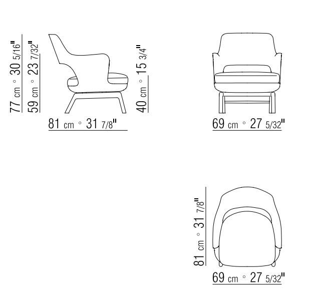 Сохраняя пропорции, коллекция демонстрирует удивительное равновесие в каждом своем варианте исполнения. Это проявляется как в клубном кресле, так и в бержере или обеденном стуле-кресле.