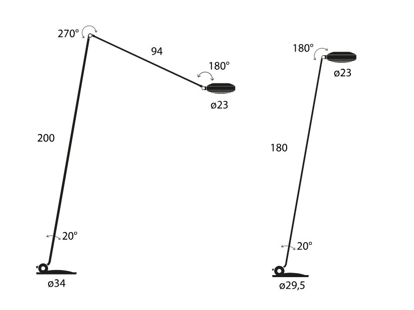 Elle — модель с шарнирным кронштейном, состоящим из двух подвижных сегментов, что позволяет гибко настраивать направление света.