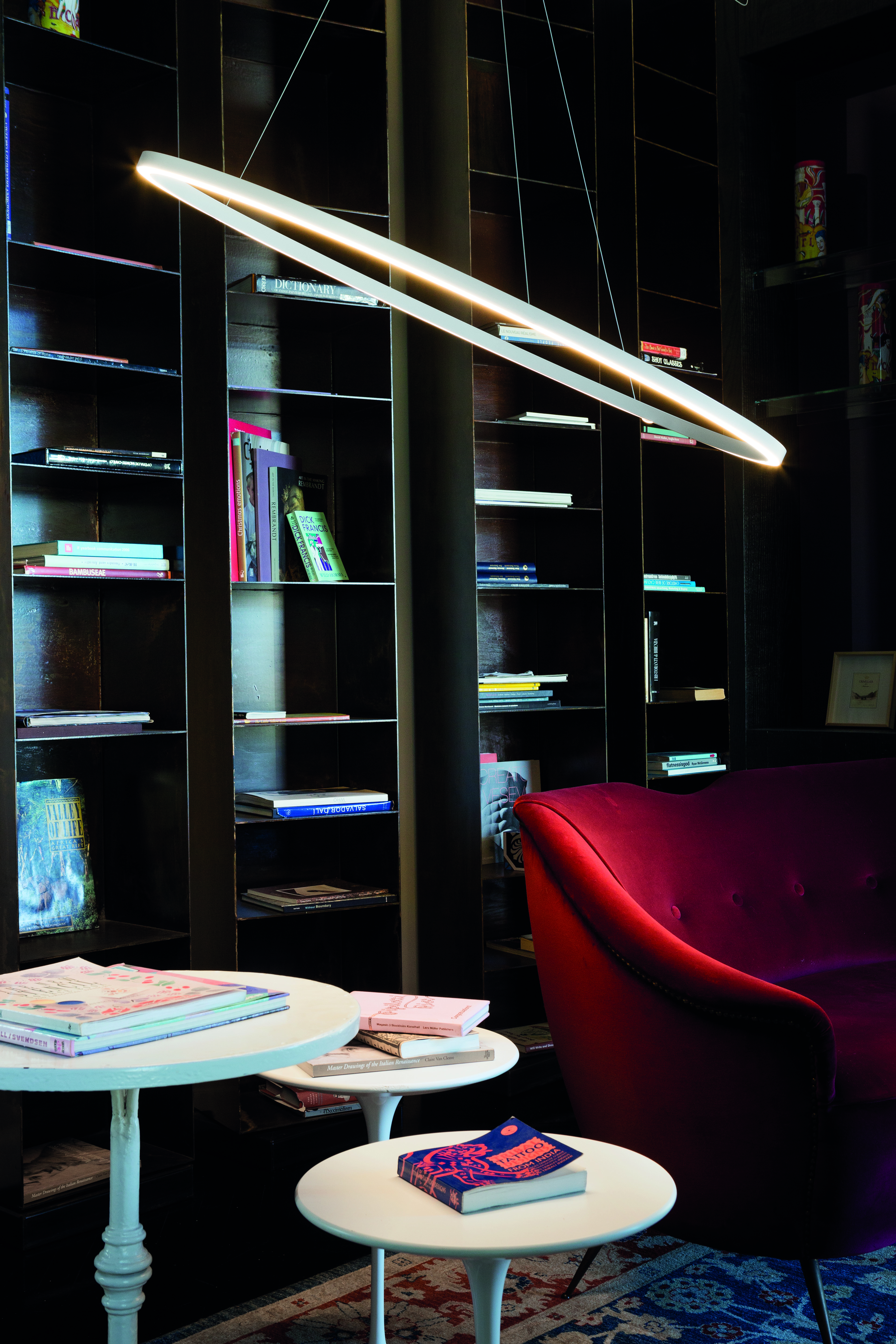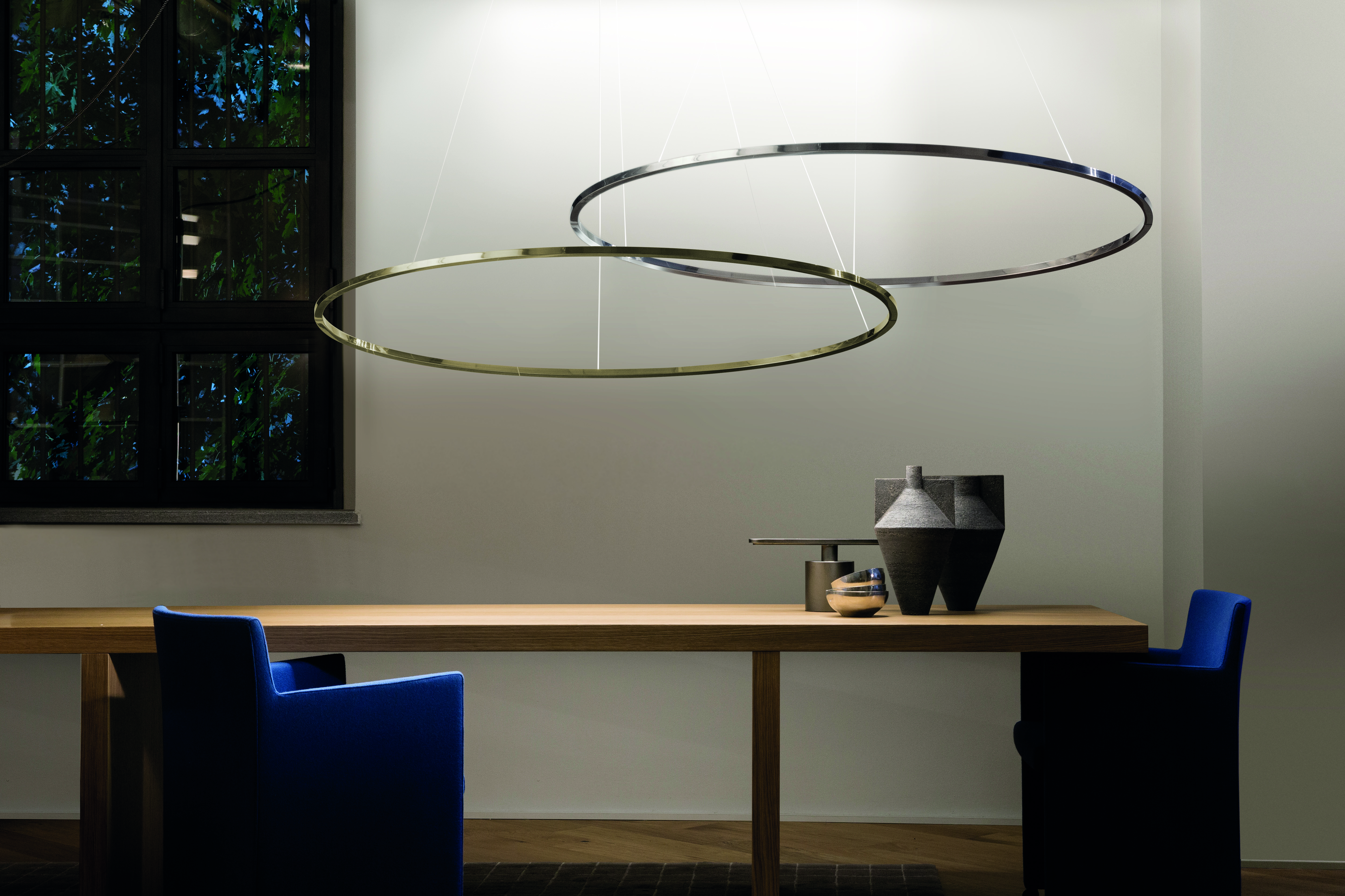 Ellisse — это коллекция напольных, настенных и подвесных светильников овальной формы. Подвесная лампа выполняется из алюминия в четырех вариантах цвета: белый, черный, полированный алюминий и золотой. Доступно два варианта размера. Подробности о данной модели уточняйте у менеджеров или в PDF инструкции.