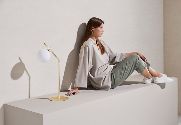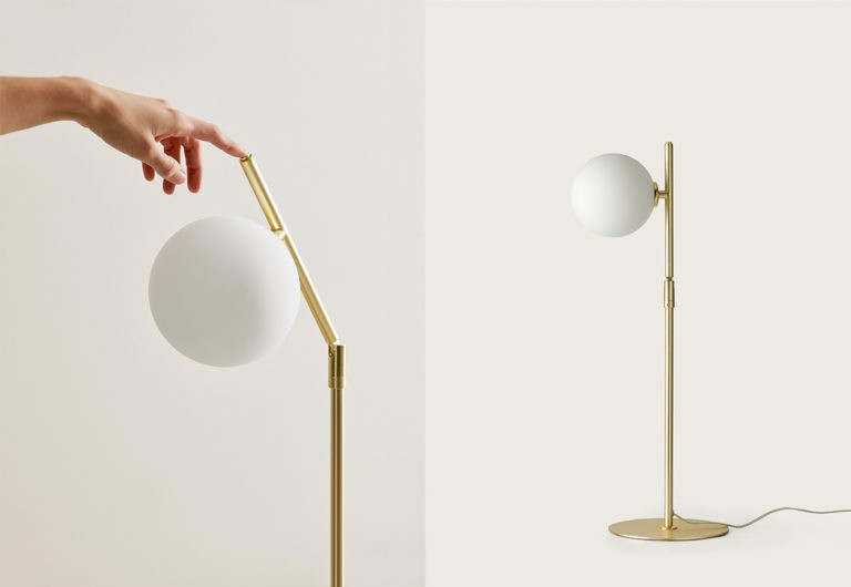 Лампа доступна в двух вариантах отделки: хром или матовая латунь.