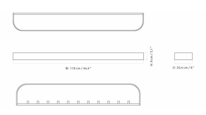 Размеры полки составляют 8 см в высоту, 118 см в ширину и 20.4 см в глубину. Эти параметры делают полку универсальной. Она подходит для различных помещений.